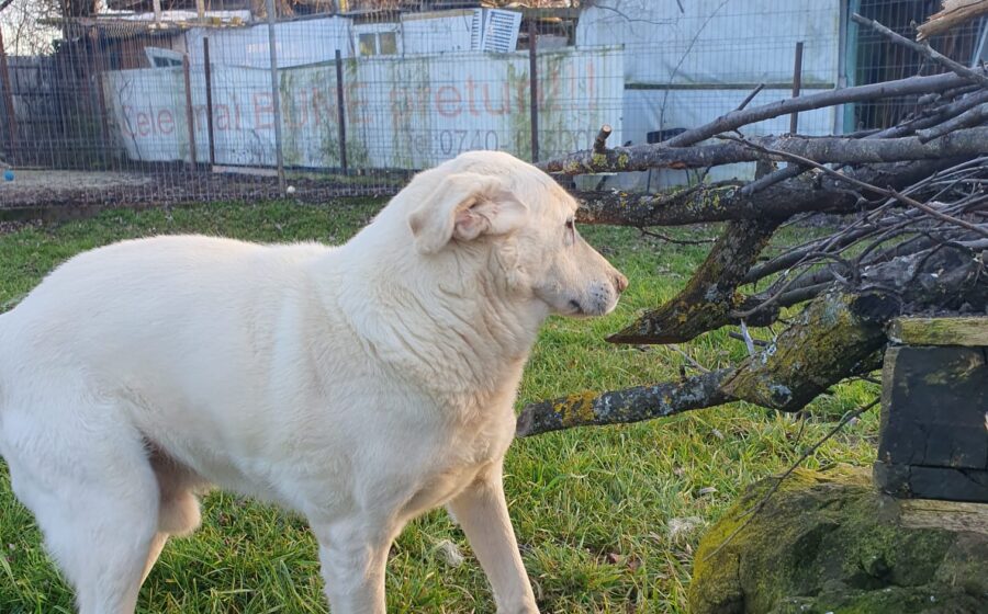 Der schöne weiße Aico hatte Glück im Unglück und konnte im Februar 2023 den kalten Zwinger, in dem er immer schlechter zurechtkam, gegen eine rumänische Unterkunft bei der Tierschützerin Mara eintauschen. Er lebt aber auch hier in Außenhaltung, in einem Zwinger. Aico hat sich in den letzten 2 Jahren gut entwickelt, aber er sucht immer noch dringend ein eigenes Zuhause, wo er im Haus leben kann und eine eigene Familie hat.