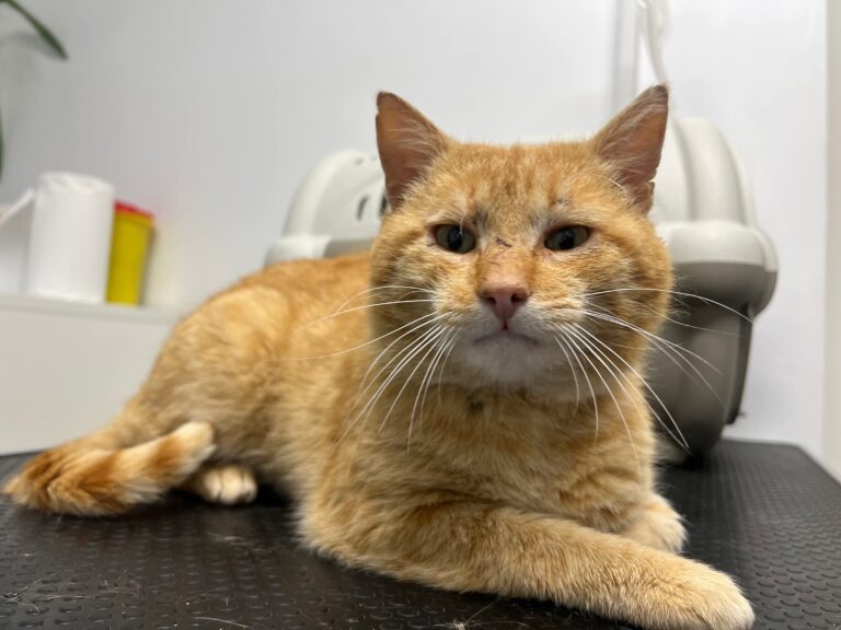 einseitig blind, FIV positiv (asymptomatisch), kein Freigang