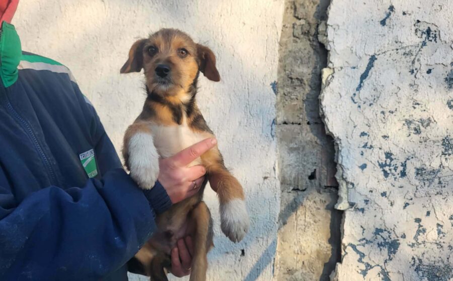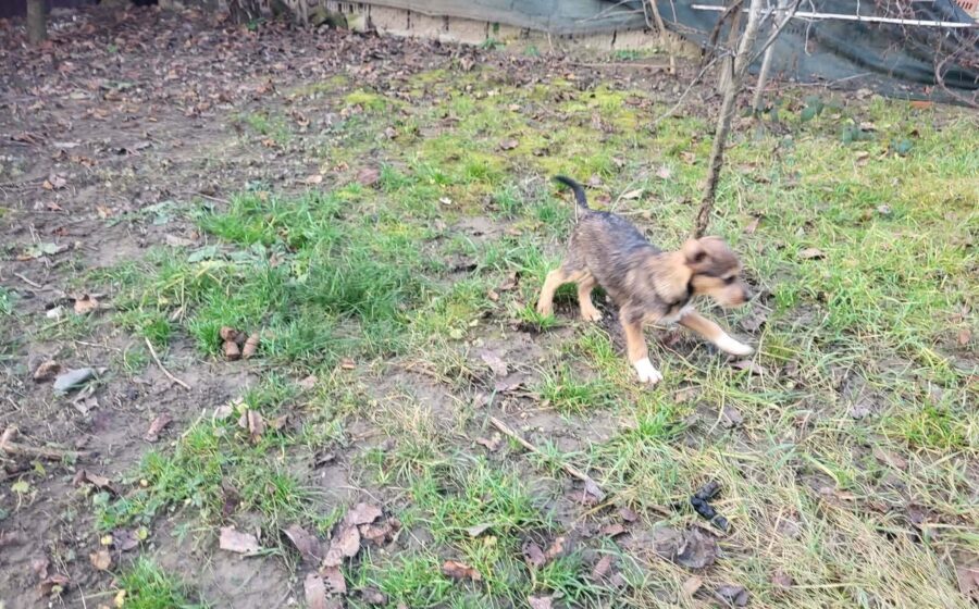 Akimo ist ein etwa 6 Monate alter, freundlicher und verspielter Welpe. Zusammen mit seinen Schwestern blüht er in der rumänischen Pflegestelle richtig auf.