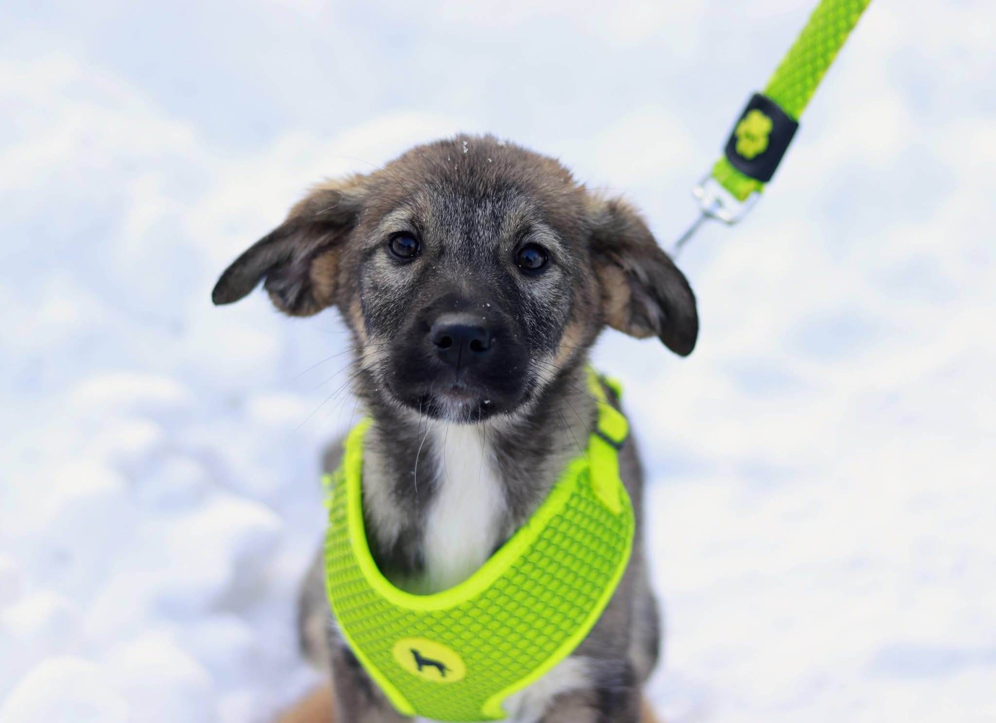 Alana hat aufmerksame, dunkle Augen und braun-schwarzes Fell mit weißen Abzeichen an der Brust und an den Pfoten. Sie ist eine hübsche, kleine Hündin mit einem schlanken und sportlichen Körperbau. Und das scheint sie auch zu wissen, denn sie blickt erwartungsvoll in die Kamera, so als wäre sie sich sicher, dass die Zukunft für sie einen Platz auf der Sonnenseite des Lebens bereithält. Alana ist erst ca. drei Monate alt und bald wird sie zu einer wunderschönen, voraussichtlich mittelgroßen Hündin heranwachsen.