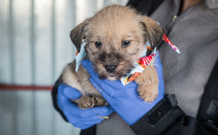 Der Start ins Leben ist für Alfie wie für seine Geschwister stark eingeschränkt. Die kleine Familie lebt in einem begrenzten Kennel, der Schutz vor Witterung bietet, aber kaum Platz, wenig Abwechslung und keine Möglichkeit, Umweltreize oder regelmäßige menschliche Nähe kennenzulernen.