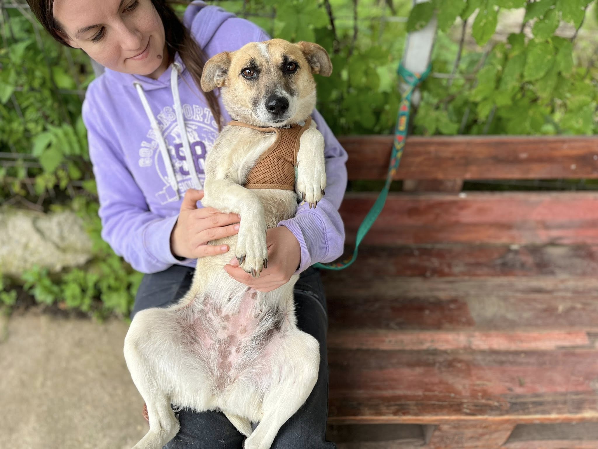 Aus Zalau wird uns berichtet, dass Almina gerne Liebe und Fürsorge entgegennehmen möchte, aber ihr im Moment noch die Angst im Wege steht. Wahrscheinlich hat sie bisher echte Liebe nicht kennengelernt. Doch Almina ist dennoch ein großer Fan von Streicheleinheiten. Sie sucht – trotz ihrer Furcht – Geborgenheit und Fürsorge. Das Laufen an der Leine fällt ihr noch schwer – auch hier werden Geduld und Einfühlungsvermögen nötig sein.
