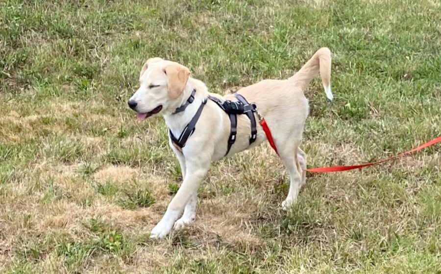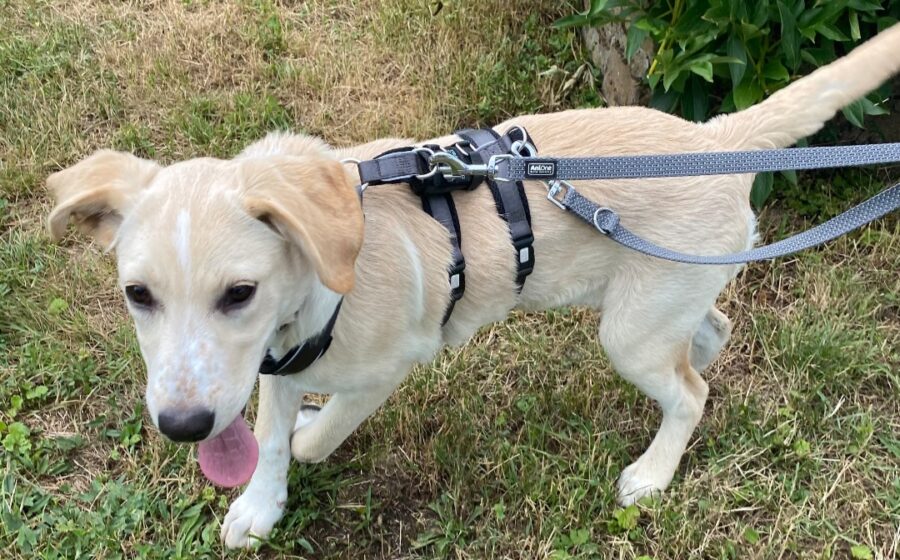 Obwohl sie erst seit kurzer Zeit in Deutschland ist, hat Almond schon viel gelernt. Sie ist bereits stubenrein, gut abrufbar und kennt einige Grundkommandos. Mit ihren 41 cm Größe und 18 kg Gewicht sieht sie aus wie ein kleiner Minilabrador.