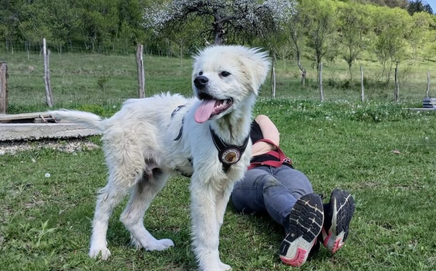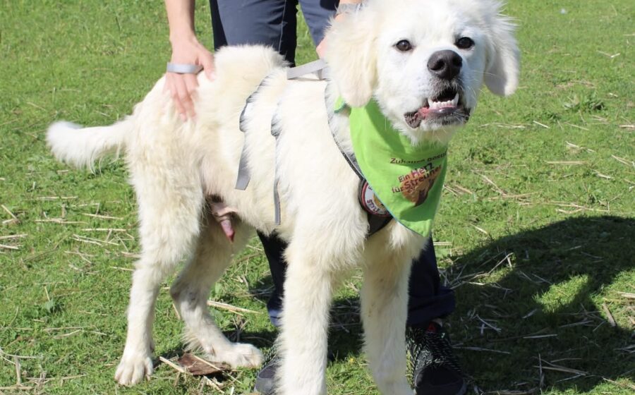 Gut möglich, dass Herdenschutzhundgene in ihm schlummern. Man sollte sich daher vorher mit den Eigenschaften einer solchen Rasse auseinandersetzen und auch überlegen, ob der Hund in das persönliche Umfeld passt. Herdenschutzhunde sind keine Stadt- oder Bürohunde. Toll wäre für Alpaka daher ein großes Grundstück, das er bewachen kann. Da das Territorium eines Herdenschutzhundes so weit reicht, wie er gucken kann, sollte das Grundstück eingezäunt sein, um ihm seine Territoriumsgrenzen zu zeigen.