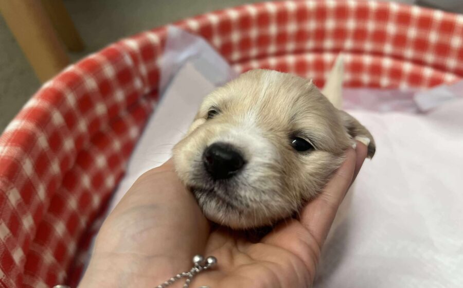 Manchmal beginnt ein neues Leben im Gebüsch – so wie bei Alwa. Gerade einmal drei Wochen alt war die kleine Hündin, als sie abends ganz allein und weinend nahe der Bahngleise gefunden wurde. Ihr Schutzengel Stefan hörte ihr Rufen, zögerte keine Sekunde und brachte sie sofort zu unserer Helferin und Tierärztin Roxana. Und das war ihr großes Glück – denn so ein winziger Welpe wie Alwa hätte im Shelter keine Chance gehabt.