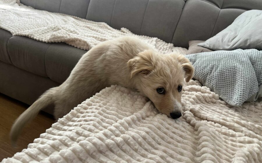 Natürlich ist Alwa noch ganz am Anfang – was Leine, Stubenreinheit, Alleinbleiben oder Grundkommandos angeht, steht sie noch bei null. Und wir reden hier über Welpen – das heißt: alles kann, nichts muss. Mal klappt’s super, mal wird auf dem Weg zum Garten noch schnell der Teppich dekoriert. Aber mit liebevoller Konsequenz, positiver Verstärkung und der Bereitschaft, gemeinsam zu wachsen, wird aus Alwa ganz sicher ein richtig tolles Familienmitglied.