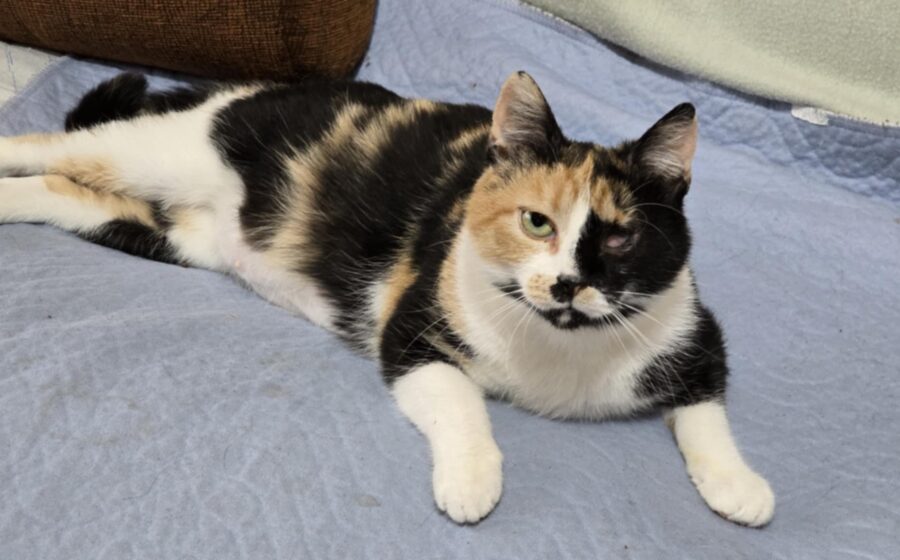 Amany ist etwa 8 Jahre alt und ein ganz besonderes Katzenmädchen. Sie hat in ihrem Leben schon einiges erlebt und trägt davon ein sichtbares Zeichen: Sie hat ihr linkes Auge verloren. Doch das beeinträchtigt sie im Alltag kaum. Amany bewegt sich sicher in ihrer gewohnten Umgebung, ist vorsichtig, aber nicht ängstlich.