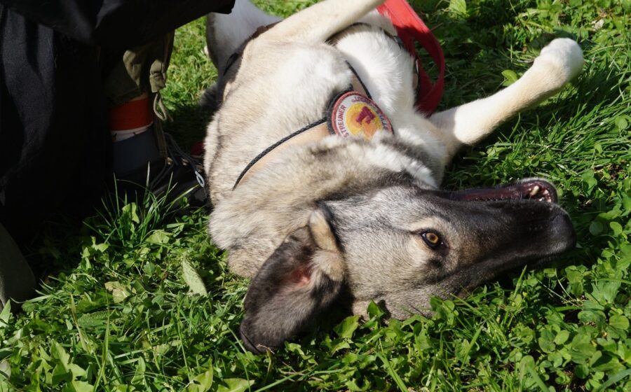 Amazone läuft sicher an der Leine und lauscht aufgeschlossen jedem Kommando. Sie interagiert sehr fein mit uns Menschen und strahlt eine tolle Ruhe aus. Sie ist so souverän auch im Umgang mit ihren Artgenossen. In ihrer Hundesprache ist sie klar und deutlich.