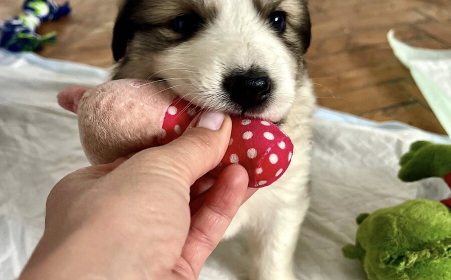 Annabell ist an einem Flussufer gerettet worden – weit entfernt vom nächsten Dorf. Es liegt nahe, dass sie ausgesetzt wurde. Wie so viele Welpen in Rumänien war sie offenbar unerwünscht. Zum Glück wurde sie noch rechtzeitig entdeckt – sonst hätte sie wohl nicht mehr lange überlebt. Die Maus durfte bereits in eine Pflegestelle nach Deutschland reisen, wo sie nun die ersten Lektionen des Hunde 1×1 erlernt.