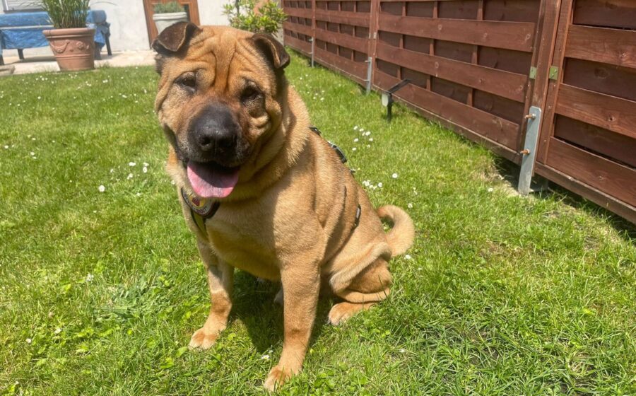 Der liebe Apache ist etwa 8 Jahre alt, 55 cm groß und wiegt rund 33 kg. Vermutlich steckt ein Shar Pei in ihm, was man nicht nur an seinem Aussehen, sondern auch an seinem charakteristischen Wesen erkennt. Seine Reise begann in Rumänien, wo er sich im Tierheim als sozialer, unauffälliger Mitbewohner zeigte. Besonders aufblühen konnte er immer dann, wenn Menschen zu Besuch kamen – dann strahlte er und genoss jede Streicheleinheit.