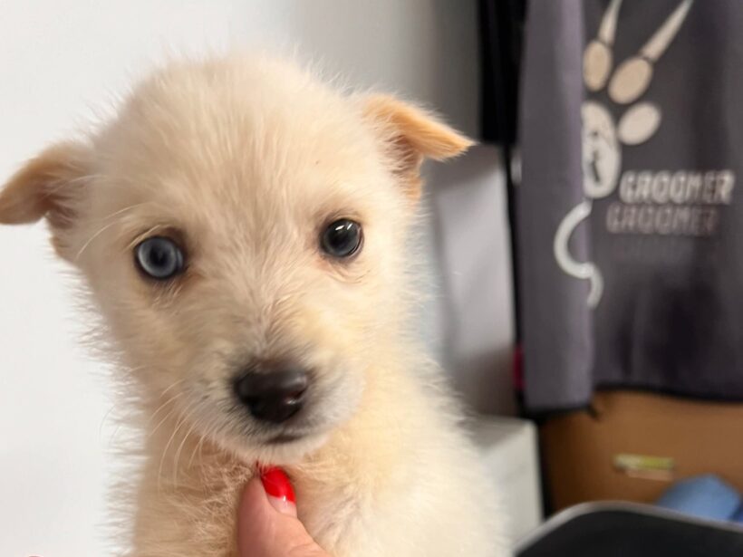 Mit seinem beigefarbenen Fell und den intensiv blauen Augen zieht Aqua sofort alle Blicke auf sich. Doch hinter dem hübschen Äußeren steckt noch viel mehr: ein neugieriger, aufgeweckter und lebensfroher Welpe, der noch alles lernen möchte – und muss.