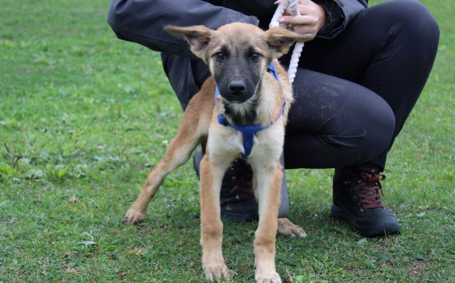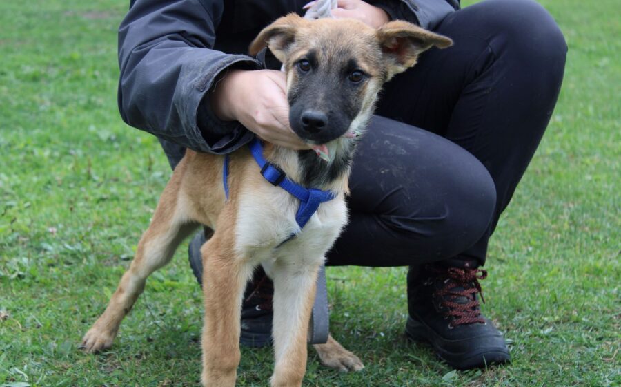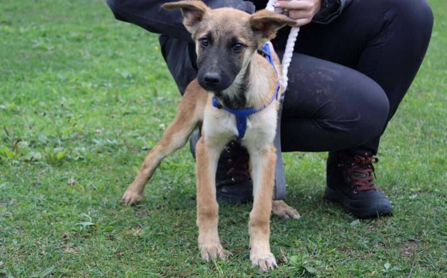 Mit seinen geschätzten 4 Monaten steckt Aragon mitten in der süßesten Welpenzeit! Aktuell misst er etwa 37–40 cm und wird vermutlich mal ein mittelgroßer bis großer Rüde – optisch ein potenzieller, toller Hütehund-Mix. Mit anderen Hunden versteht er sich gut, ob das auch für Katzen gilt, wissen wir nicht. Aragon und seine Geschwister scheinen keinen leichten Start ins Leben gehabt zu haben. Nun sind sie aber in Sicherheit und warten darauf, gesehen zu werden. Typisch für seinen Start ins Leben zeigt sich Aragon zunächst ein wenig schüchtern. Aber wer Geduld hat, wird belohnt: Ist das Eis einmal gebrochen, taut er auf und kommt fröhlich zu dir, genießt Streicheleinheiten und liebt es, gehalten zu werden. Er ist dabei ein eher ruhiger Welpenjunge, was vielleicht darauf hindeutet, dass sein bisheriges Leben nicht ganz einfach war. Gerade diese anfängliche Zurückhaltung erfordert in der Welpenzeit besonders viel positive Verstärkung, sanfte Konfrontation mit der Welt und viel Sicherheit durch seine neuen Menschen.