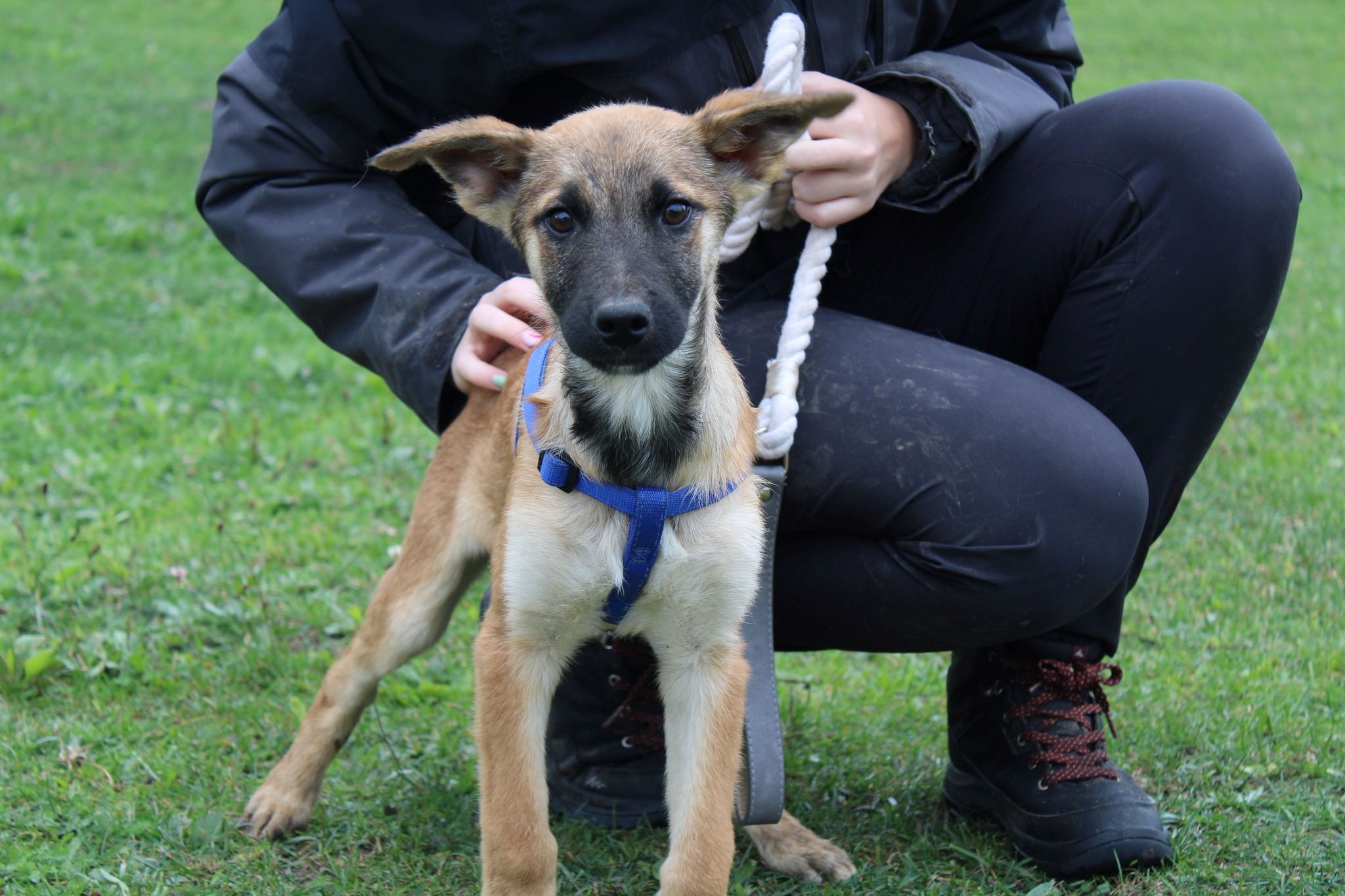 Aragon ist ein absoluter Blickfang: Sein Fell ist überwiegend in warmem Hellbraun gehalten, das wunderbar mit seiner markanten, schwarzen Schnauze kontrastiert. Ein besonderer Hingucker ist seine bezaubernde schwarz-weiße Brust! Dazu kommen Ohren, die sich noch nicht ganz entscheiden können, ob sie mal stehen wollen oder nicht – einfach nur zum Anbeißen süß.