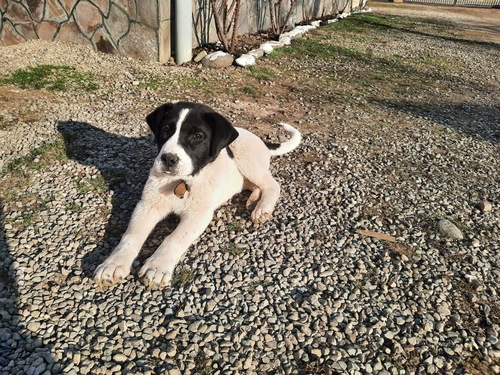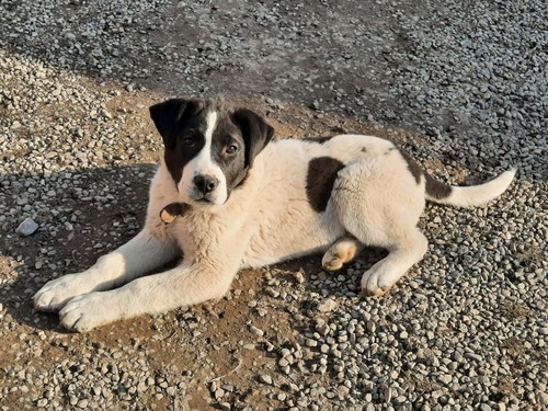 Sie ist eine kräftige und tollpatschige, welpentypisch verspielte Welpin – sie liebt es, zu spielen und herumzutollen, und möchte so gerne das Leben genießen. Arca hat kurzes, weißes Fell mit schwarzen Abzeichen und eine wunderschöne Gesichtszeichnung. Sie ist ein ganz besonders hübsches und charmantes Hunde-Mädchen, das aus dunklen Kulleraugen zuversichtlich in eine bessere Zukunft schaut.