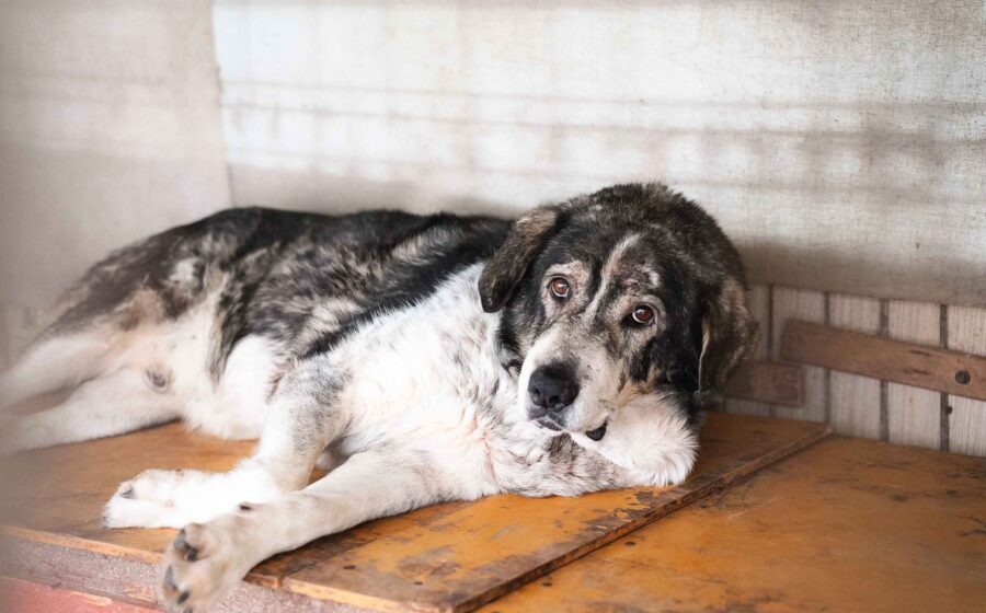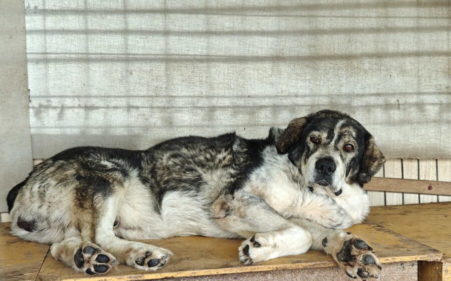 Aris ist ein großer, etwa zehn Jahre alter Rüde mit wuscheligem, schwarzem und hellbraunem Fell mit einer Schulterhöhe von etwa 60-65 cm. Seine warmen, dunkelbraunen Augen erzählen Geschichten – von Angst, von Überlebenswillen, aber vielleicht auch von kleinen Momenten der Hoffnung. Aufgrund seiner Optik können wir Herdenschutzhundgene nicht ausschließen.