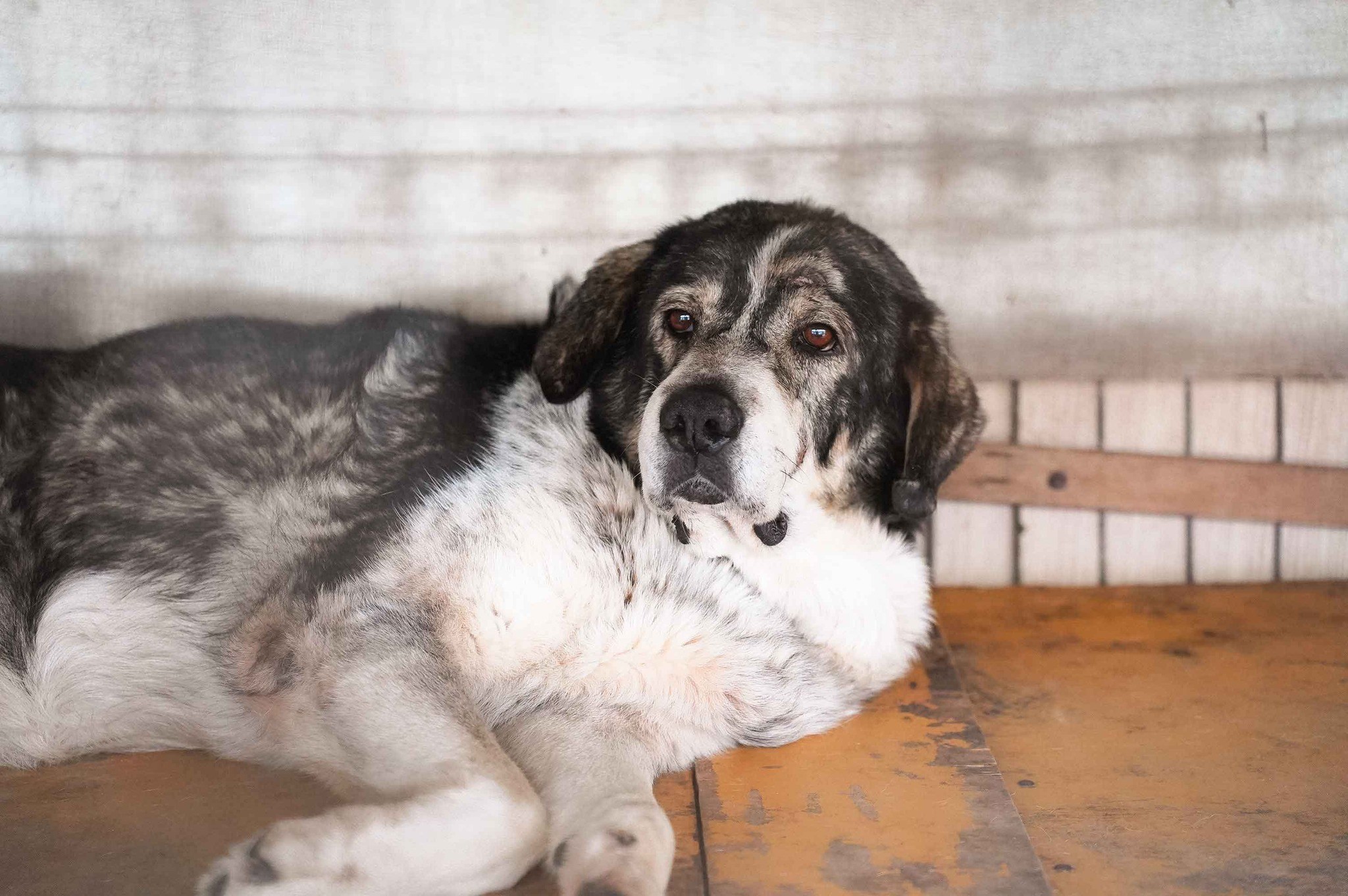 Aris ist ein großer, etwa zehn Jahre alter Rüde mit wuscheligem, schwarzem und hellbraunem Fell mit einer Schulterhöhe von etwa 60-65 cm. Seine warmen, dunkelbraunen Augen erzählen Geschichten – von Angst, von Überlebenswillen, aber vielleicht auch von kleinen Momenten der Hoffnung. Aufgrund seiner Optik können wir Herdenschutzhundgene nicht ausschließen.