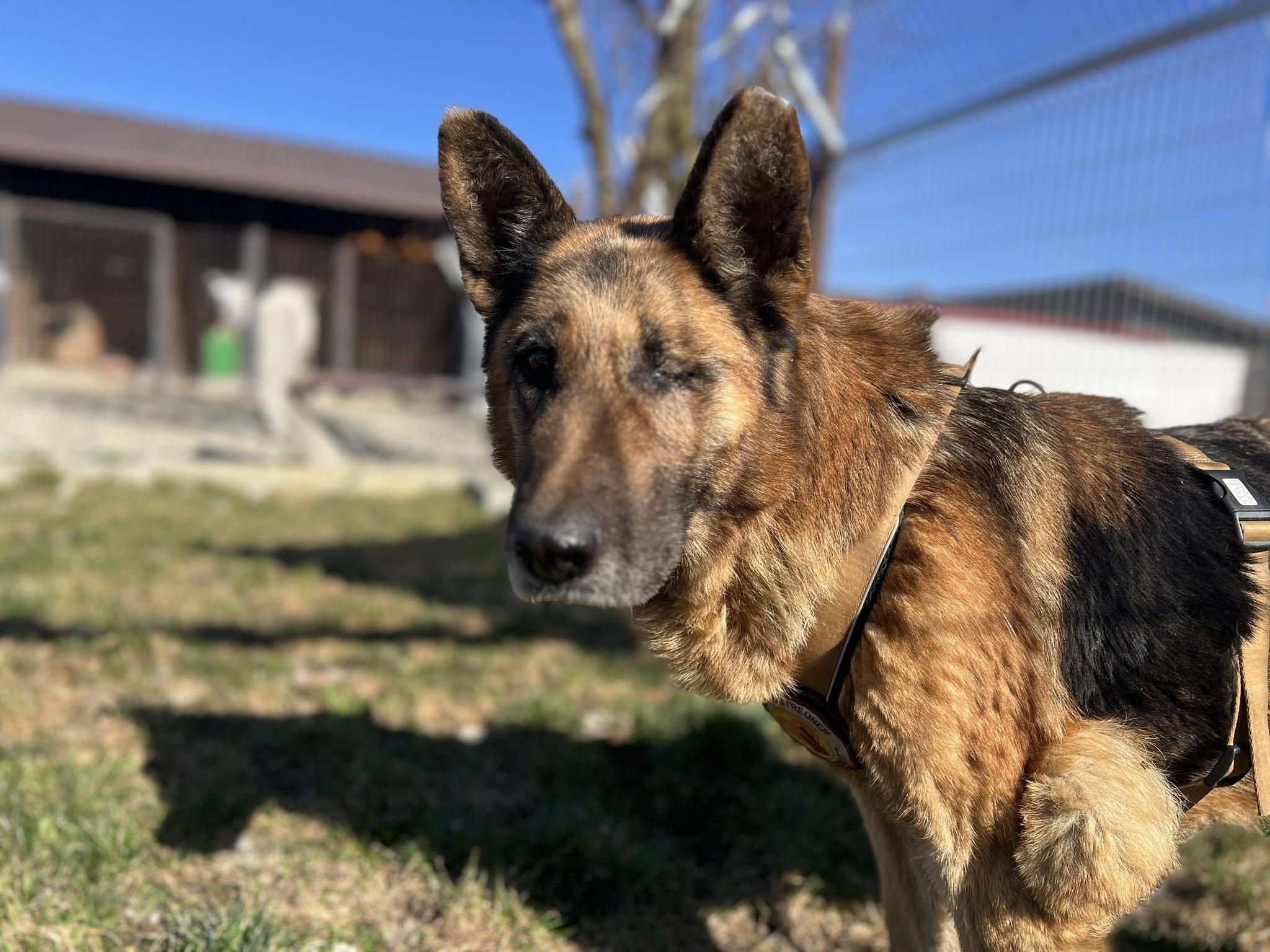 Heute ist sie in Sicherheit, aber ihre Vergangenheit hat Spuren hinterlassen. Astra fehlt das linke Auge. Was genau passiert ist, können wir nicht sagen. Vielleicht ein Unfall, vielleicht eine alte Verletzung, vielleicht hat sich nie jemand gekümmert. Trotz allem kommt sie erstaunlich gut damit zurecht. Hunde können sich an so etwas anpassen, und Astra zeigt jeden Tag, dass sie leben will.