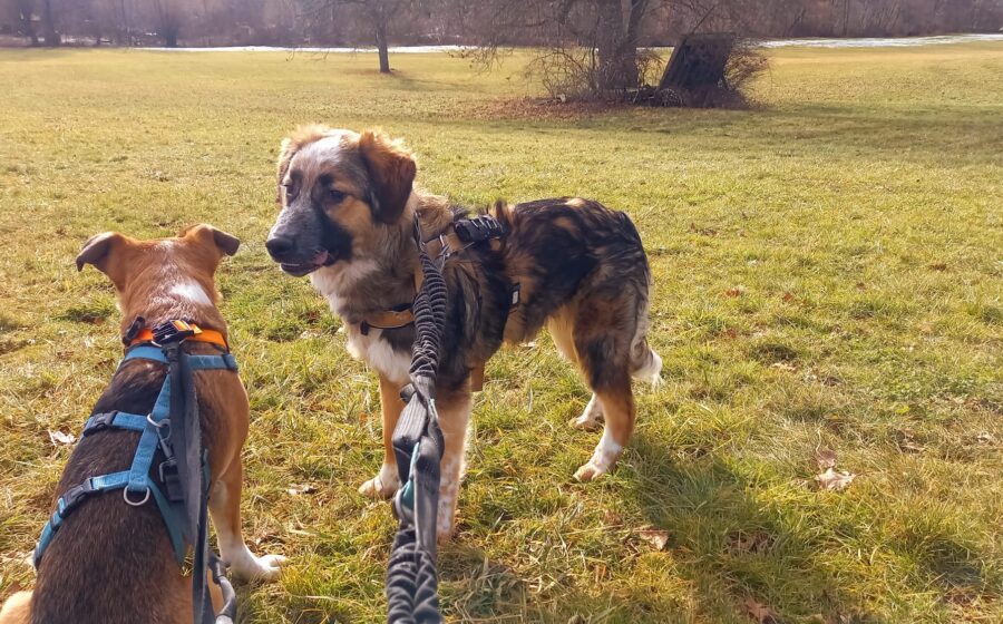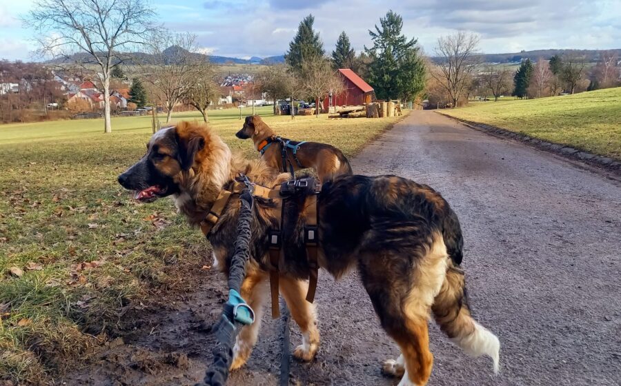 Mit den vorhandenen fünf Ersthunden im Haushalt versteht sie sich sehr gut, sie fordert alle, egal ob alt oder jung, zum Spielen auf, leckt sie im Vorbeigehen ab und zeigt ein ausgeglichenes, soziales Verhalten. Bei fremden Hunden ist sie anfangs noch etwas zurückhaltend, das legt sich aber rasch.