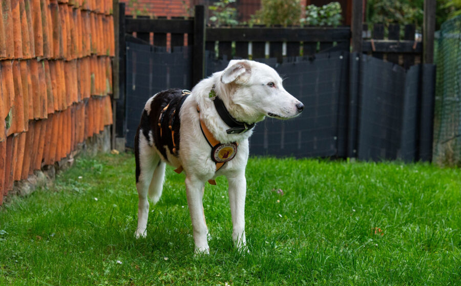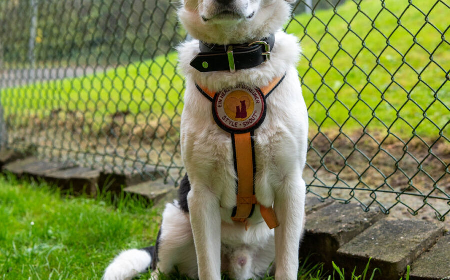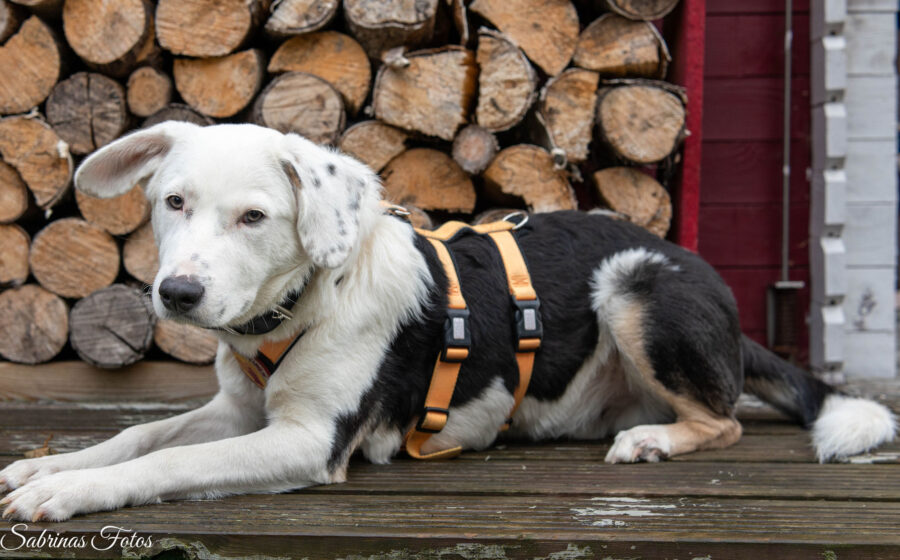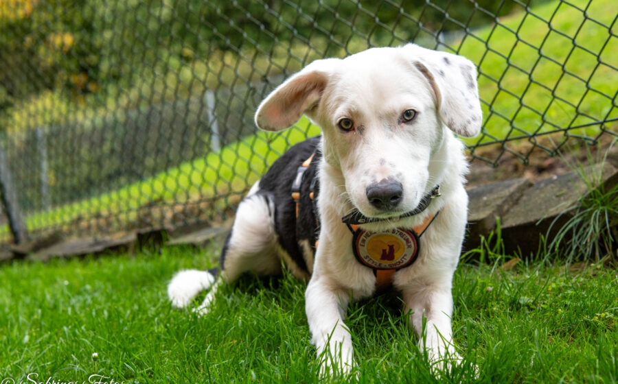 Azzuro verwandelt sich gerade zu einem echten „Vorzeigehund“. Nach intensivem Training lässt sich Azzuro nun auch sein Geschirr anziehen und es konnte endlich raus in die Welt gehen. Er wird immer sicherer draußen, orientiert sich sehr gut an seiner Bezugsperson und erkundet neue Umgebungen. Autos, Traktoren, LKWs – alles kein Problem. All die neuen Herausforderungen meistert er in seinem Tempo ganz wunderbar. Andere Hunde, Fußgänger und Radfahrer sind ihm noch etwas ungeheuerlich, aber mit ein wenig Übung wird er auch an ihnen selbstbewusst vorbei gehen können.