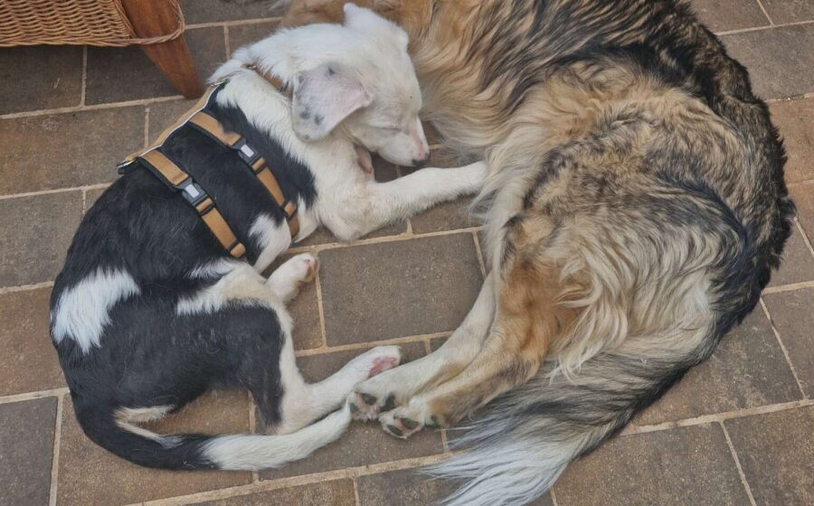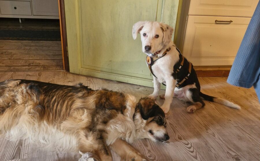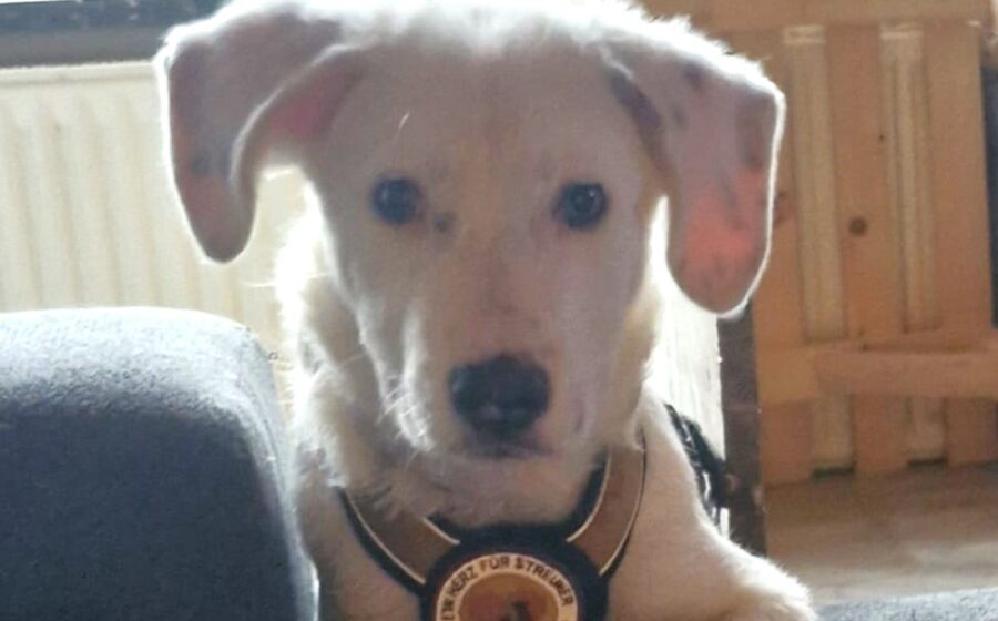 Azzuro verwandelt sich gerade zu einem echten „Vorzeigehund“. Nach intensivem Training lässt sich Azzuro nun auch sein Geschirr anziehen und es konnte endlich raus in die Welt gehen. Er wird immer sicherer draußen, orientiert sich sehr gut an seiner Bezugsperson und erkundet neue Umgebungen. Autos, Traktoren, LKWs – alles kein Problem. All die neuen Herausforderungen meistert er in seinem Tempo ganz wunderbar. Andere Hunde, Fußgänger und Radfahrer sind ihm noch etwas ungeheuerlich, aber mit ein wenig Übung wird er auch an ihnen selbstbewusst vorbei gehen können.