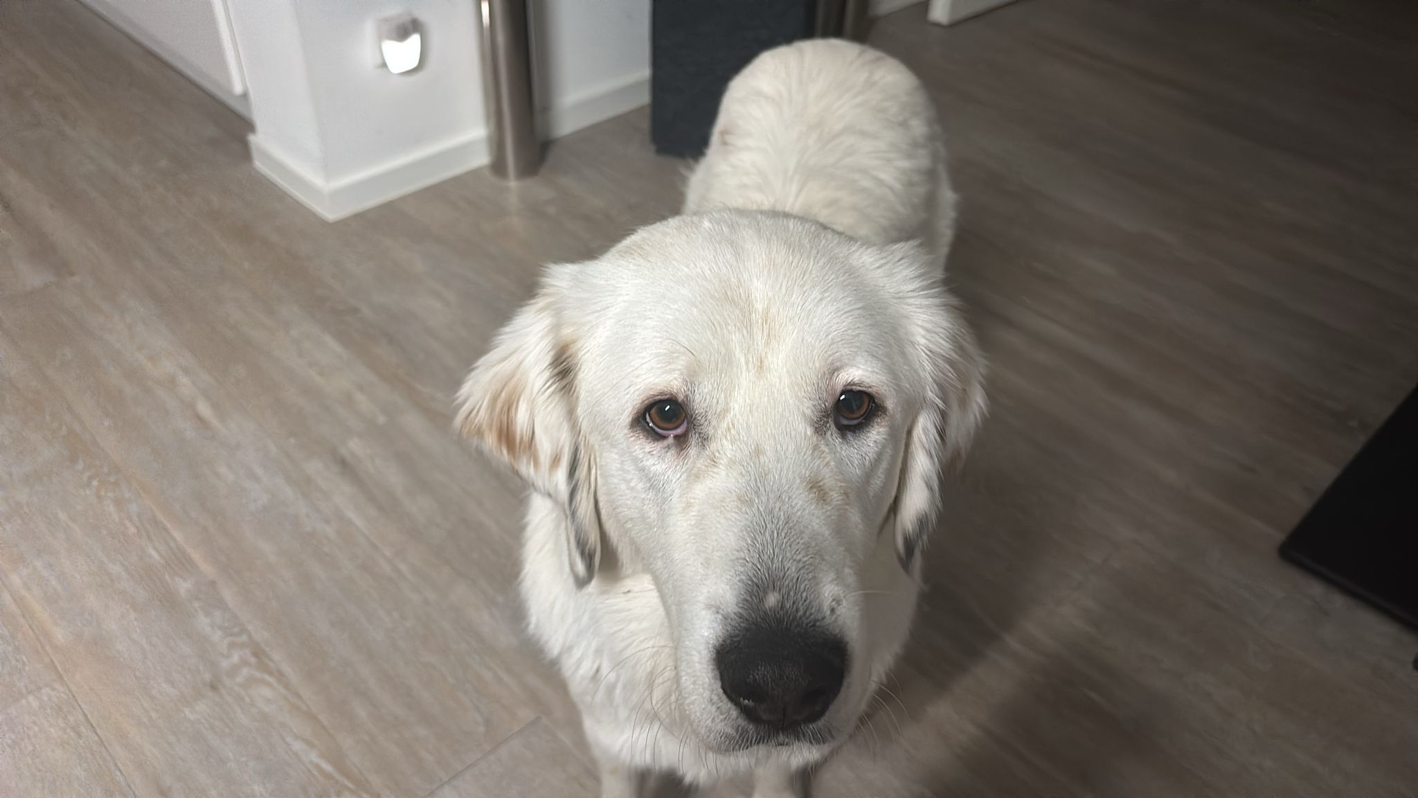 Optisch ist Bahar ein echter Hingucker: schneeweißes, halblanges Fell, eine sanfte, aber souveräne Ausstrahlung und eine beeindruckende Größe von ca. 65 cm bei rund 35 kg. Wir gehen davon aus, dass sie ein Herdenschutzhund-Mix ist, was sie zu einer loyalen, feinfühligen und wachsamen Begleiterin macht.