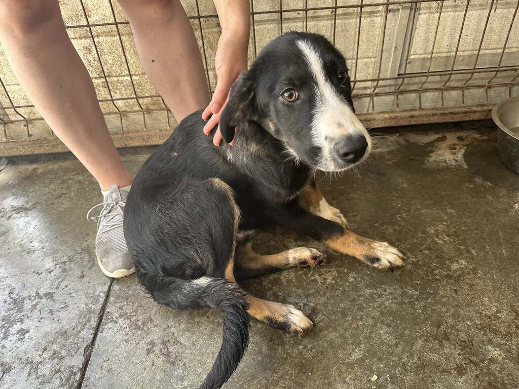 Mit seinem hübschen, schwarz-braun-weißen Fell und den sanften, wachen Augen erinnert dieser junge Rüde ein wenig an einen kleinen Berner Sennenhund. Ob etwas davon in ihm steckt, ist nicht gewiss. Sicher ist nur eines: Er ist wunderschön, charmant und bereit, die Welt zu entdecken.