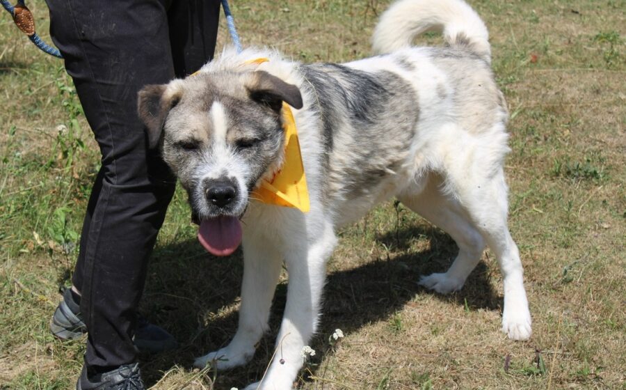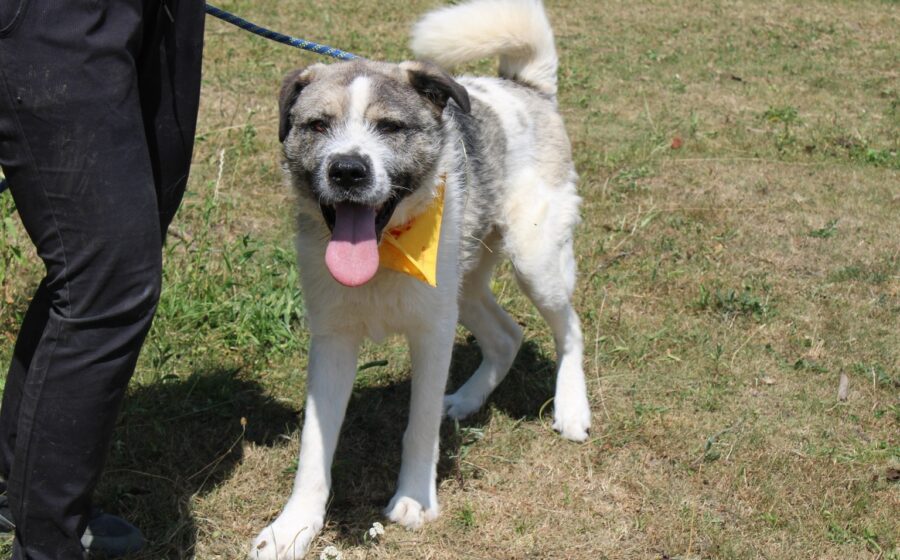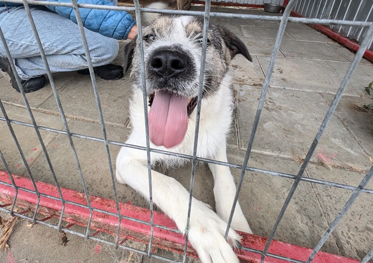 Belmondo wurde offenbar ausgesetzt, aber wir wissen nicht, wie lange er bereits allein herumirren musste. Auch wissen wir wie üblich nichts von seiner Vorgeschichte, aber der tolle Mann hat sein Vertrauen in uns Menschen nicht verloren. Hier im Shelter zeigt sich der Strolch von seiner besten Seite und ist uns Zweibeinern gegenüber offen und freundlich. Der mittelgroße Belmondo hat seine 25 kg und 57 cm Höhe in weißem Fell mit mehrfarbigen Akzenten verpackt.  Sein kräftiger Kopf mit attraktiver Musterung und den widerspenstigen Härchen auf dem Nasenrücken, wird von weichen Schlappohren umrahmt.  In seinen dunklen lebendigen Augen steht deutlich die Aufforderung „komm, lass uns gehen“ geschrieben.