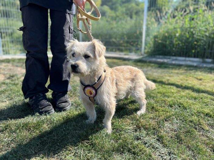 Bembel ist ein kleiner Energiebündel auf vier Pfoten. Der etwa einjährige Rüde wurde von aufmerksamen Menschen auf einer stark befahrenen Straße entdeckt und zum Glück rechtzeitig in Sicherheit gebracht. Nun lebt er im Shelter und wartet darauf, endlich sein eigenes Zuhause zu finden.