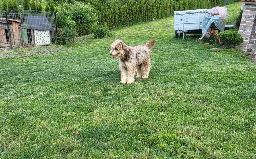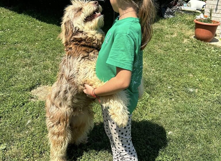 Benitas bisherige Biographie bricht uns das Herz. Dieses wundervolle, wuschelige Wesen wurde von unseren phantastischen Tierschützerinnen und Tierschützern im Wald aufgegriffen – mit einem eingewachsenen Draht um den Hals. Dies lässt eigentlich nur einen Schluss zu – Benita sollte erhängt werden, konnte aber wohl entkommen, worüber wir unendlich glücklich sind.