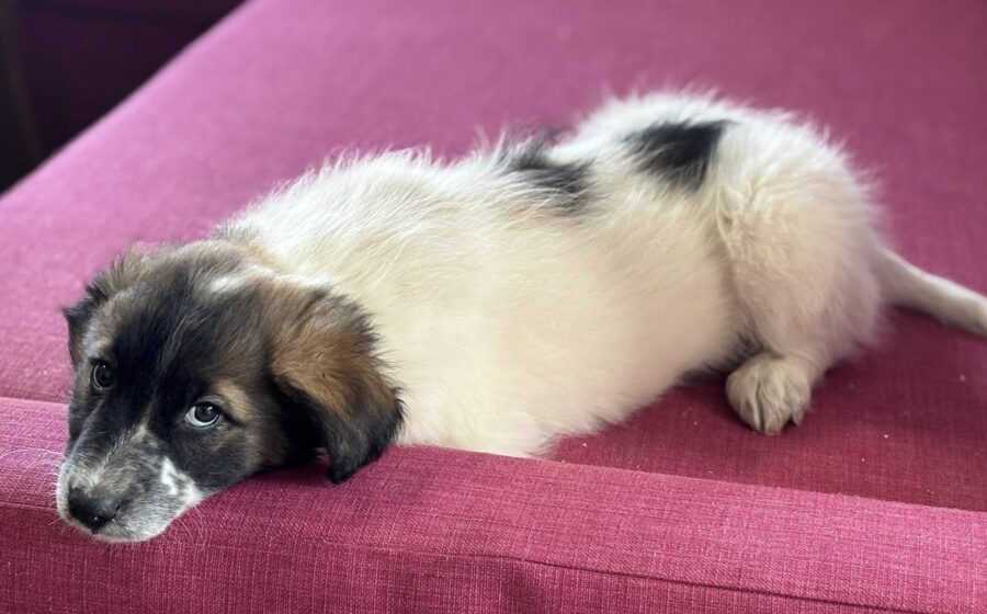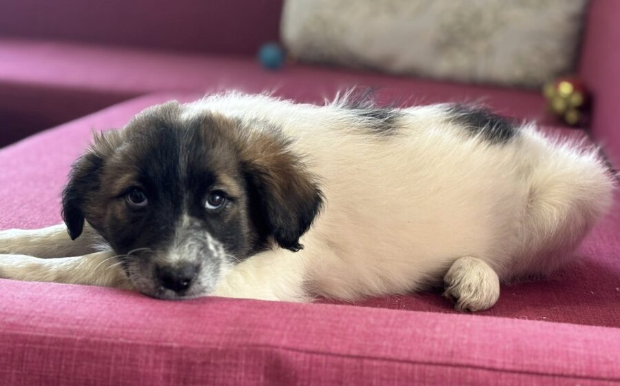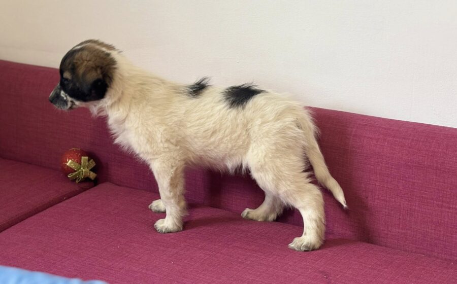 Bento ist aktuell ca. 4 Monate alt und aktuell ca. 30 cm groß und um die 3,5 kg schwer und wird ausgewachsen vermutlich eine mittlere bis große Größe erreichen. Sein Fell ist besonders und unverwechselbar. Er hat einen weißen Körber mit großen Punkten auf dem Rücken und einen hübschen dunklen Kopf. Bento hat einen Knick in seiner Rute. Vermutlich war die Rute dort gebrochen. Den Grund dafür kennen wir nicht, denn er kam bereits so zu uns.