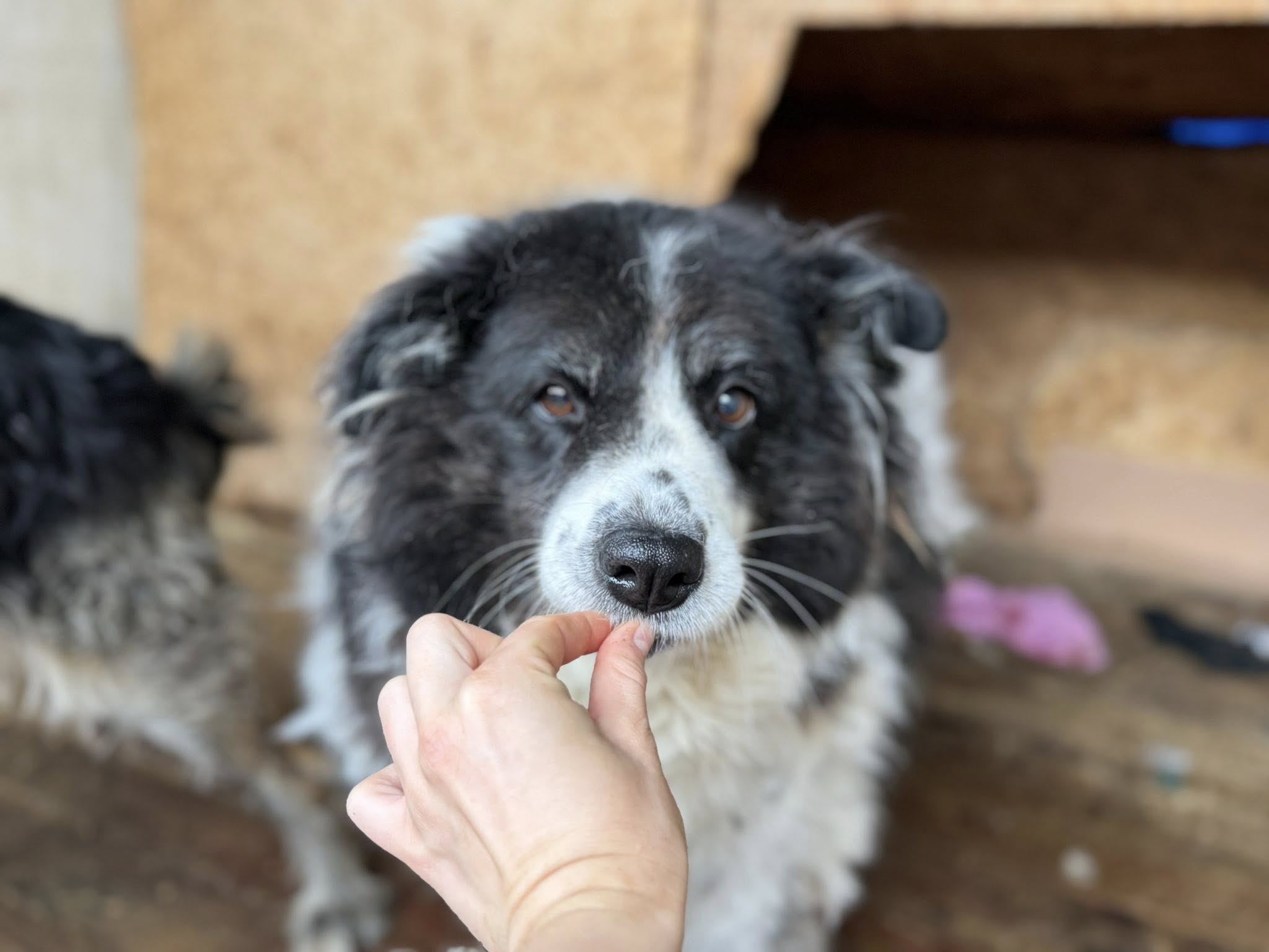 Unsere liebe Berlinda ist eine etwa 7 Jahre alte Hündin von rund 50 cm Schulterhöhe, die derzeit im öffentlichen Shelter von Baia Mare / Rumänien lebt. Sie ist eine sanft wirkende, schwarz-weiße Hündin mit einem dichten, flauschigen Fell und einem liebevollen Gesichtsausdruck. Ihre treuen, dunklen Augen blicken vorsichtig, aber neugierig in die Welt – als wolle sie wissen, ob sie endlich jemandem vertrauen darf. Wenn man sich ruhig und freundlich nähert, lässt Berlinda sich anfassen und nimmt auch gerne Leckerlies aus der Hand – vielleicht ein wunderbares Zeichen dafür, dass sie Vertrauen fassen möchte.
