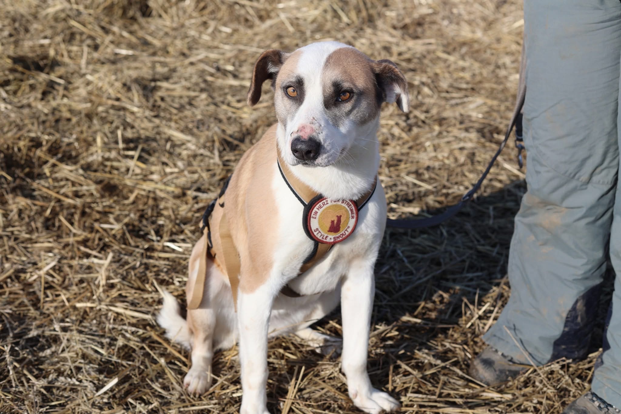 Trotz allem, was sie erlebt hat, ist Betsy eine unglaublich freundliche und liebevolle junge Hündin geblieben. Sie sucht aktiv den Kontakt zum Menschen, genießt Nähe und zeigt sich offen und zugewandt. Ihre fröhliche, sanfte Art macht es leicht, sie ins Herz zu schließen. Mit anderen Hunden versteht sie sich gut. Zu ihrer Verträglichkeit mit Katzen können wir derzeit leider noch nichts sagen.