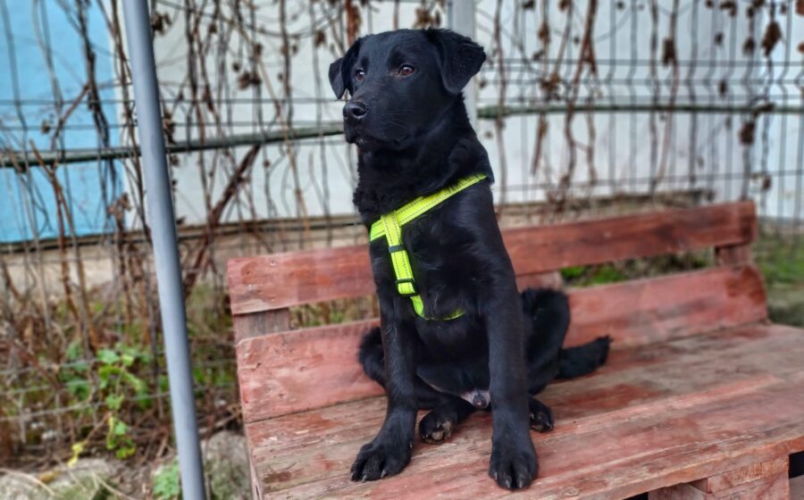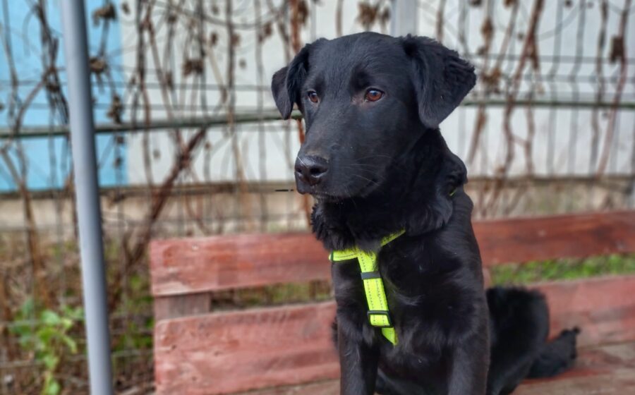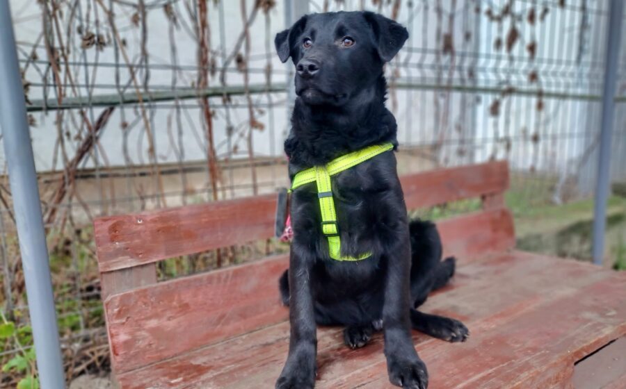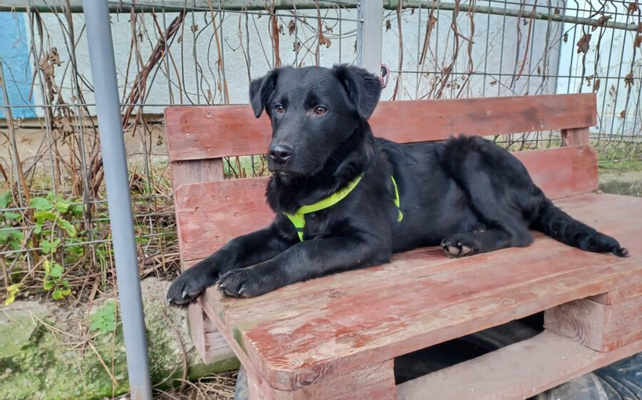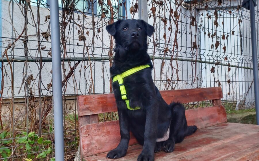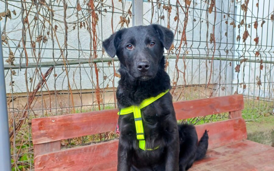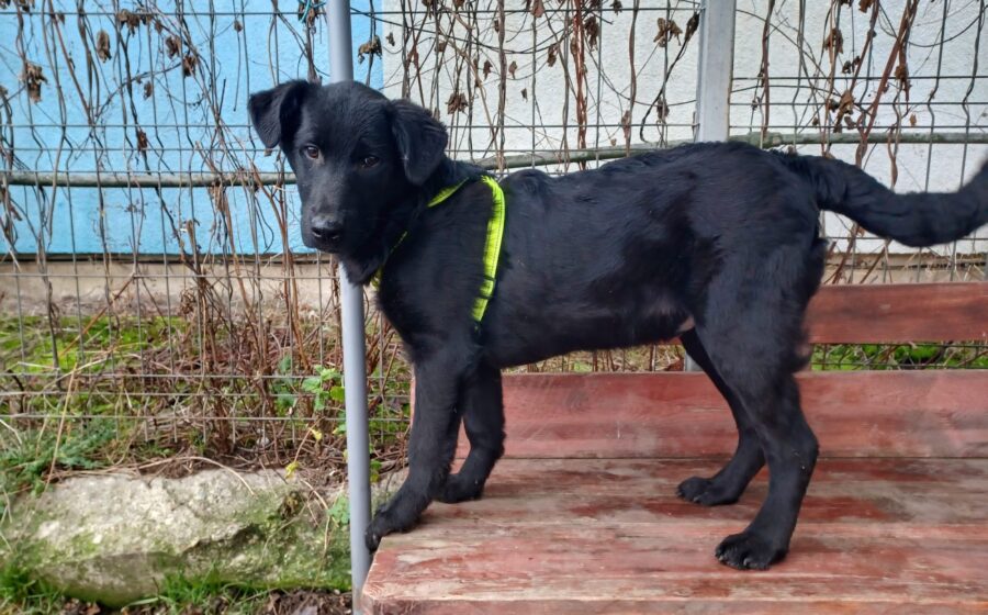 Blackie ist etwa 6 Monate alt und ein echter Blickfang: rabenschwarzes, glänzendes Fell, weiche Schlappohren und wunderschöne braune Augen, die einen direkt ins Herz treffen. Aktuell lebt er im Shelter Zalau in einem Außenzwinger – ein Ort, der für einen jungen Hund wie ihn viel zu laut, zu kalt und zu reizarm ist.