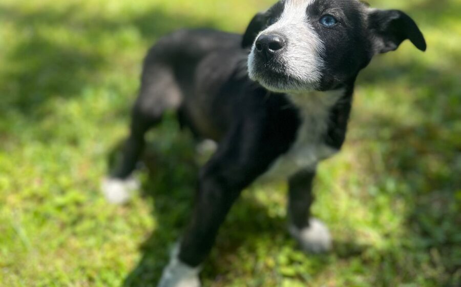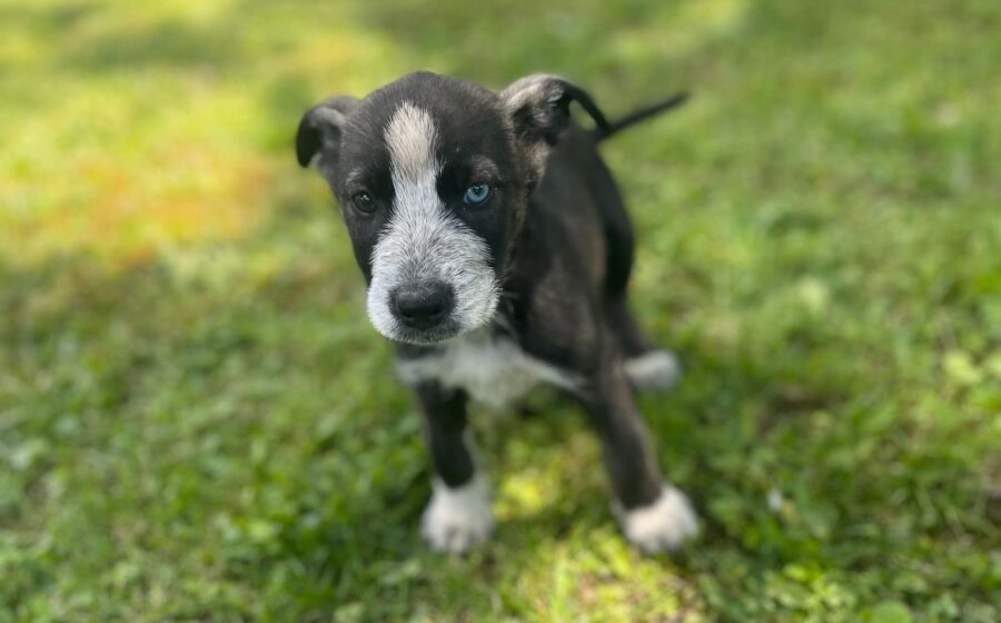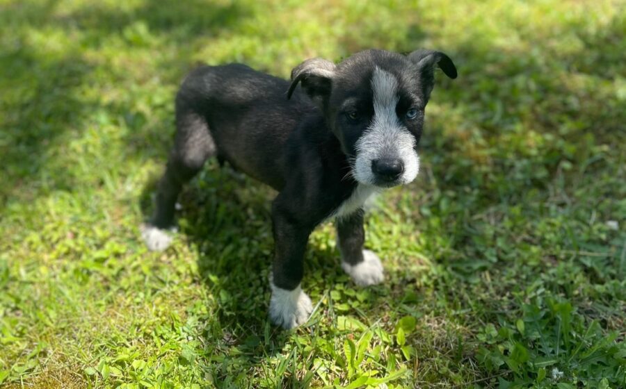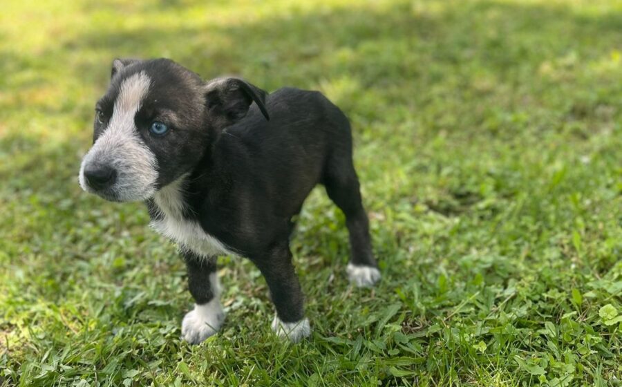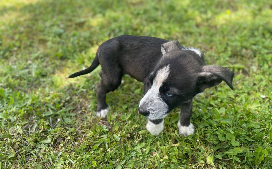 Der auffällige Blinky mit den unterschiedlich gefärbten Augen ist genau wie seine Geschwister ein kleiner Kämpfer, sonst hätte er es sicher nicht geschafft, unter so schweren Startbedingungen zu einem lebensfrohen, gesunden Welpen heranzuwachsen. Er ist freundlich und aufgeschlossen und ein verspielter, kleiner Rüde. Er liebt es, mit seinen Geschwistern herumzutollen.