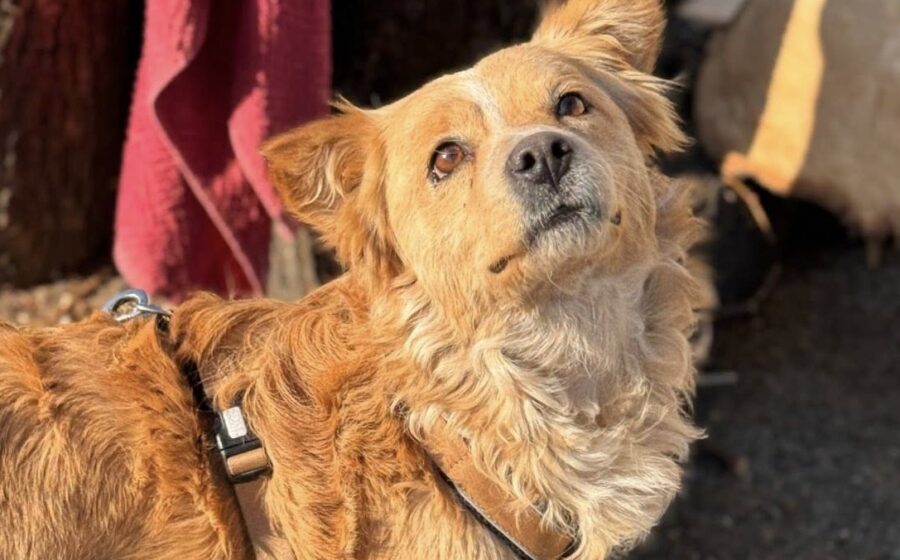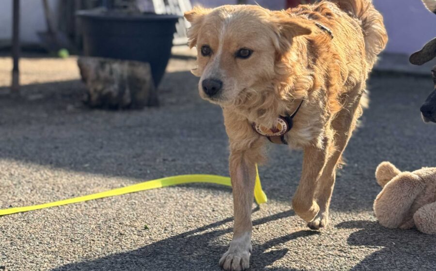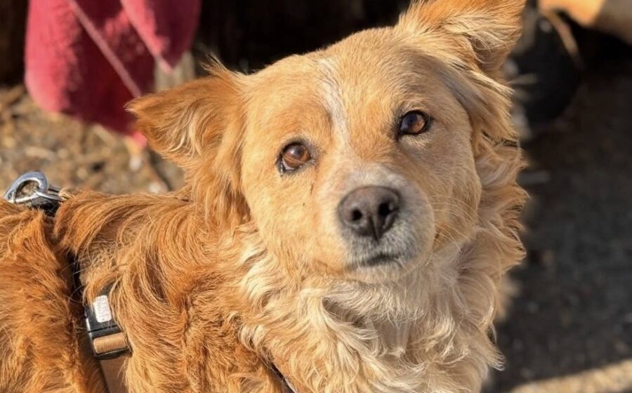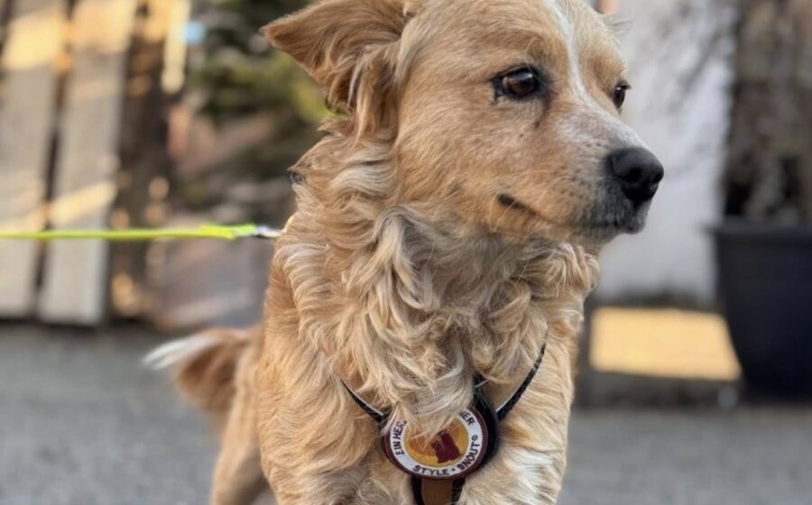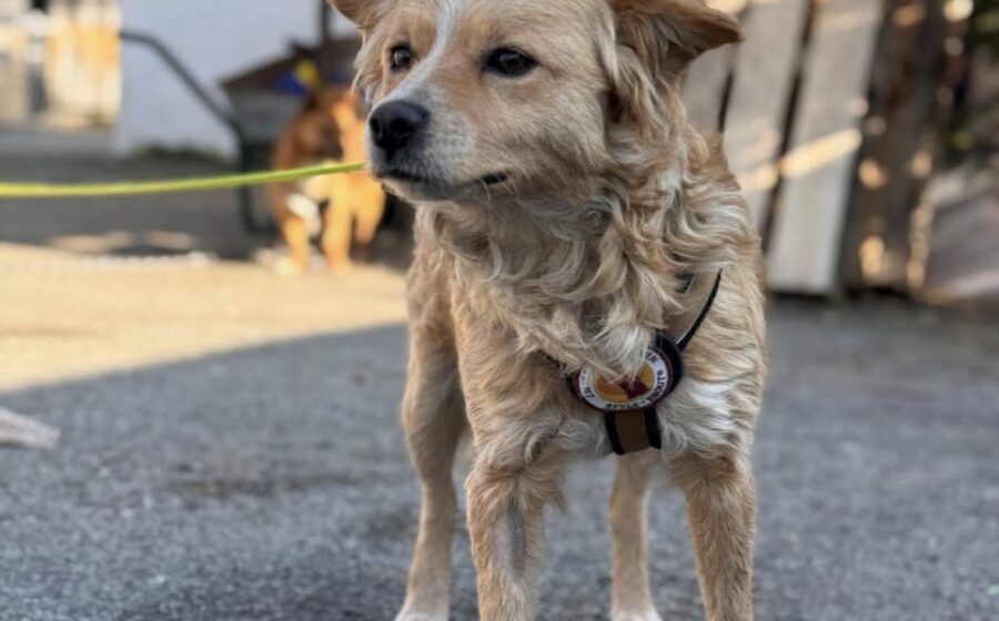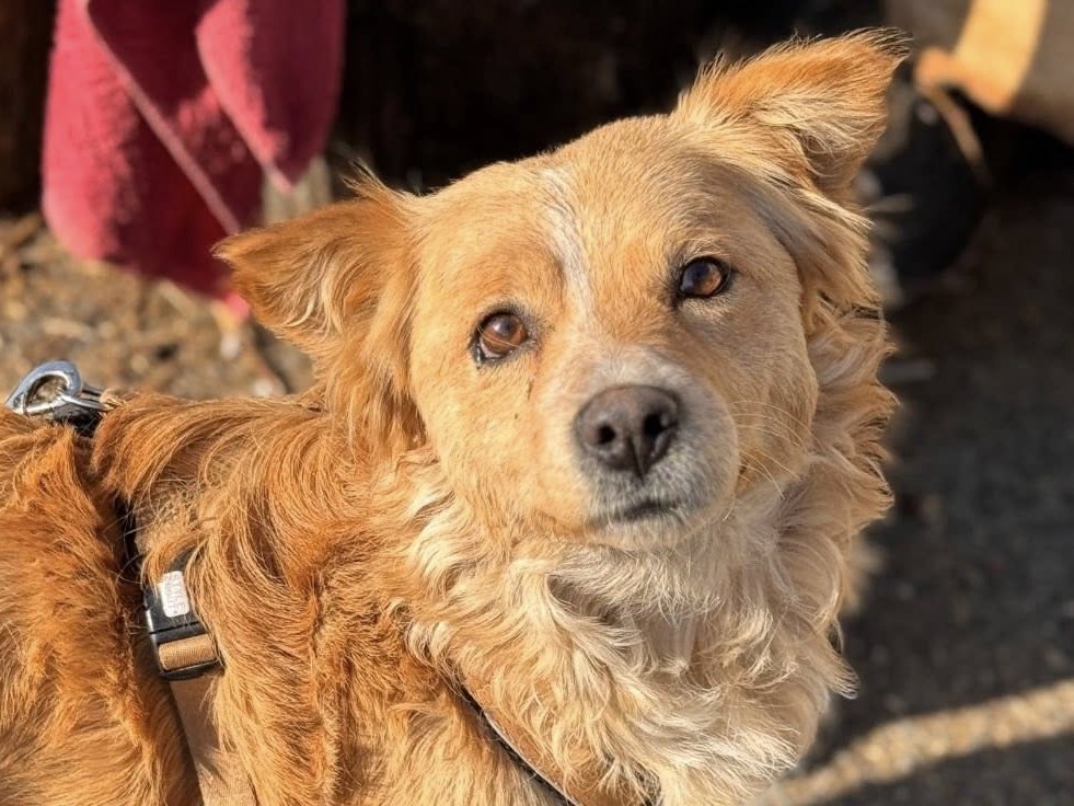 Blume ist eine junge Hündin mit einem ganz besonderen Gesichtsausdruck. Ihr beiges Fell mit der weißen Blesse macht sie zu einer echten kleinen Schönheit, und wenn man sie einmal anschaut, muss man automatisch lächeln. Sie wirkt auf den ersten Blick etwas vorsichtig, aber genau das macht ihren Charme aus.