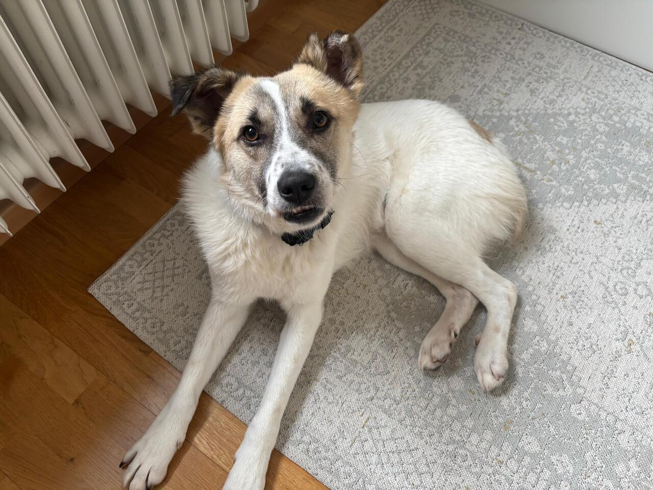 Bolero ist etwa 1,5 Jahre alt, ca. 52 cm groß und ein bildhübscher Mischlingsrüde mit weißem Fell und hellbraunen Akzenten. Ein kleines, besonderes Merkmal: An seinem linken Ohr fehlt ein Stück – ein stiller Zeuge seiner Vergangenheit, der ihn nur noch einzigartiger macht.