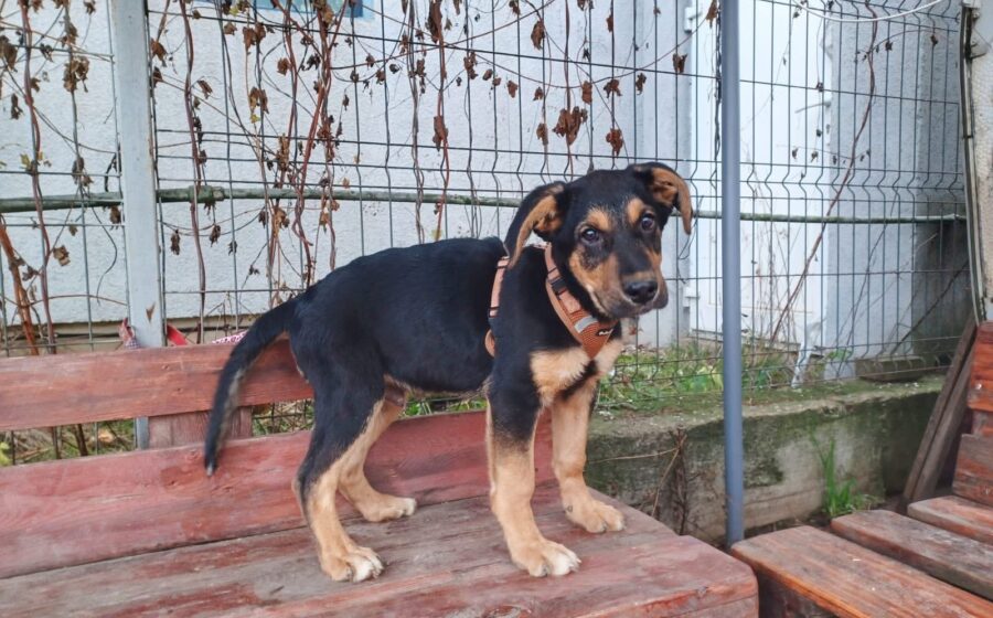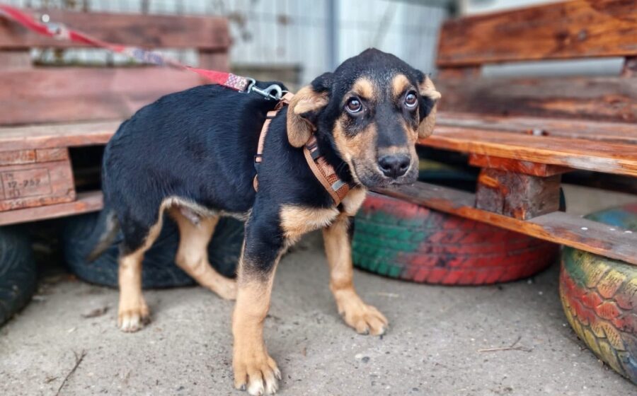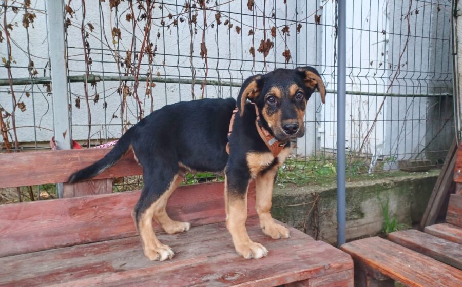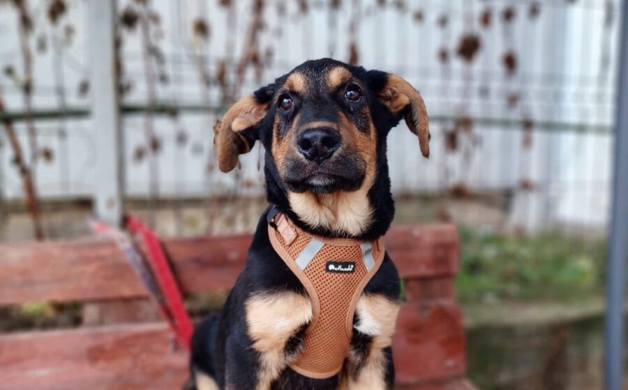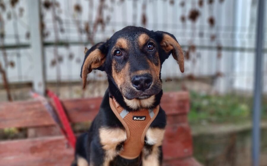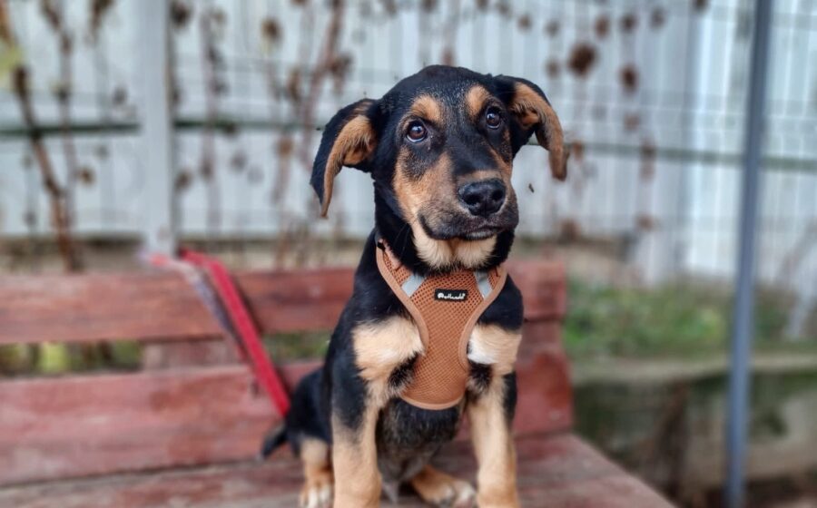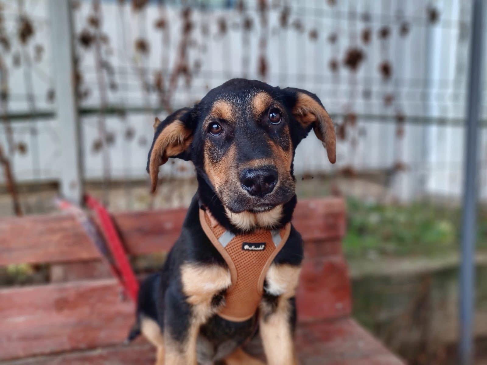 Der kleine Racker Bommel ist ein herrlicher Welpe, der größenmäßig derzeit zwischen seinen beiden Geschwistern liegt. Die kecke Schnüffelnase mit den entzückenden Hänge-/Schlappohren hat noch Großes vor. Mit ca. 36 cm Schulterhöhe und seinen 10 kg, wird Bommel zu einem großen Mittelformat auswachsen, wobei die Chance besteht, dass er die 60 cm Marke überschreitet. Bommel ist mit seinem weichen schwarz-beigefarbenen Fell und der auffälligen Gesichtszeichnung ein sehr hübscher Bursche. Wie seine Geschwister ist Bommel ein Menschenfreund und ein ausgeglichener und fröhlicher Welpe, der hier im Shelter prima mit anderen Hunden auskommt. Daher ist es so wichtig, dass Bommel bald in sein eigenes Zuhause ausreisen kann, wo er in einer sicheren Umgebung aufwächst und sein ausgeglichener Charakter weiterhin gefördert wird. Katzen hat Bommel bisher noch nicht kennengelernt.