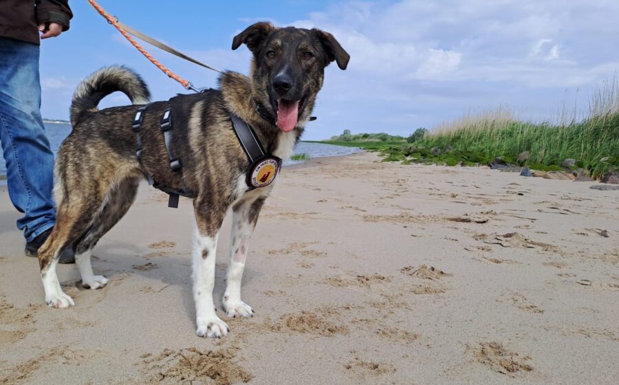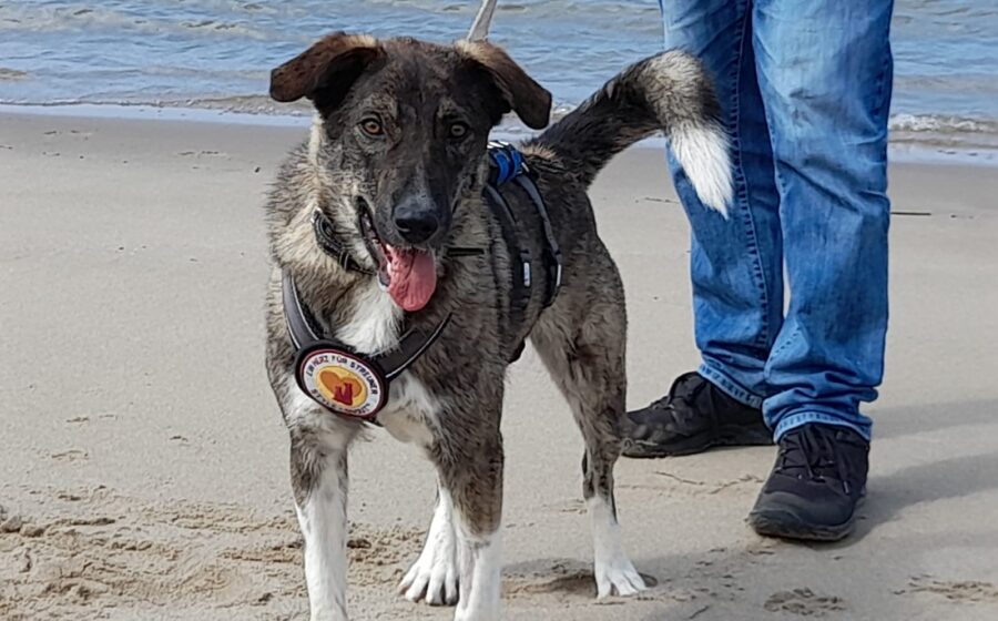 Sie hat natürlich als junger Hund auch ein paar Flausen im Kopf. Sie ist eben erst 1,5 Jahre alt. Es ist schön, die Erfolge beim Lernen zu sehen und sich mit ihr darüber zu freuen. Stubenrein war sie von Anfang an. Zu fremden Menschen ist sie freundlich, egal ob männlich oder weiblich, Kinder im Haushalt sollten etwas älter sein. Mit den beiden Hunden der Pflegestelle bleibt sie problemlos allein. Wenn sie ohne Zweithund allein bleiben soll, muss das natürlich noch geübt werden. Kleintiere und Katzen sollten nicht im neuen Zuhause sein, da sie sie aller Wahrscheinlichkeit nachjagen würde. Ein souveräner Ersthund, der sich nicht die Butter vom Brot nehmen lässt, kann gern im neuen Zuhause leben.