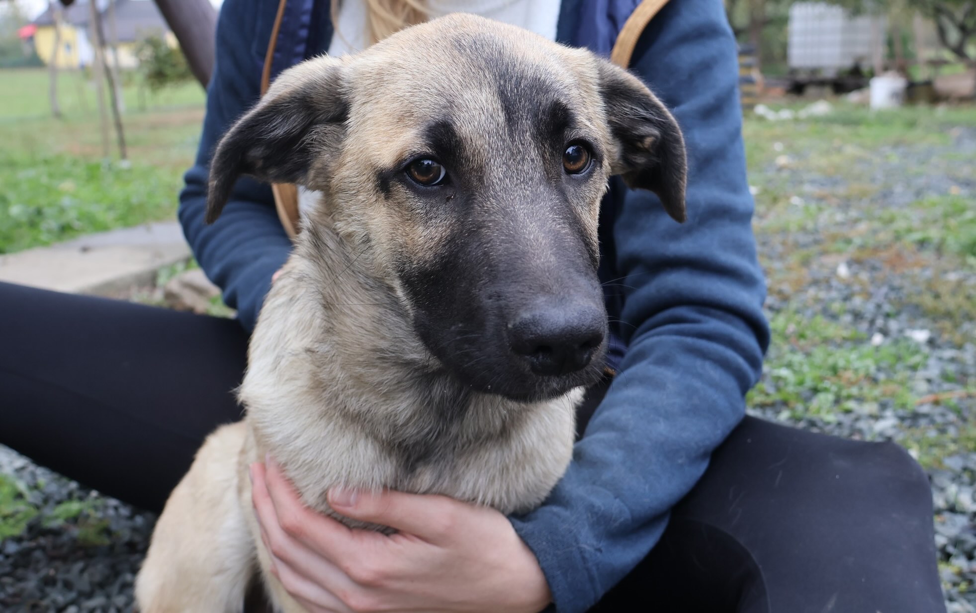Butschek ist erst 3 – 4 Monate alt und noch ein richtiges Baby, sein Fell ist kuschelig und weich und blond mit einer schwarzen Maske im edlen, schmalen Gesicht. Vermutlich werden die Racker eine große Größe erreichen. Die Mutter der Welpen ist vermutlich ein Malinois-Mischling. Den Vater kennen wir leider nicht, daher können wir einen Herdenschutzhund-Einschlag nicht ausschließen. Aus diesem Grund suchen wir verantwortungsbewusste Menschen, die Erfahrung mit aktiven und charakterstarken Hunden haben. Künftige Halter:innen sollten Freude an konsequenter Erziehung, artgerechter Beschäftigung und einem sicheren Umfeld mitbringen, damit sich die Kleinen zu ausgeglichenen und verlässlichen Begleitern entwickeln können.