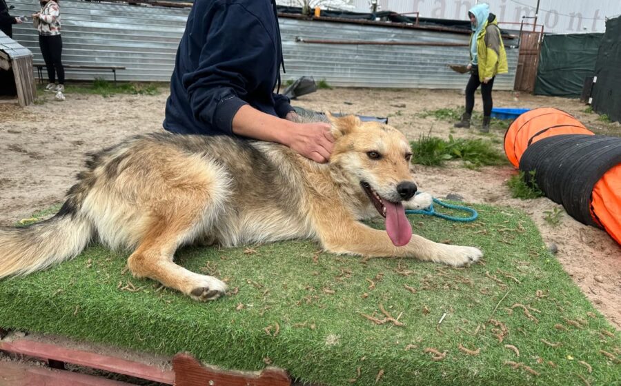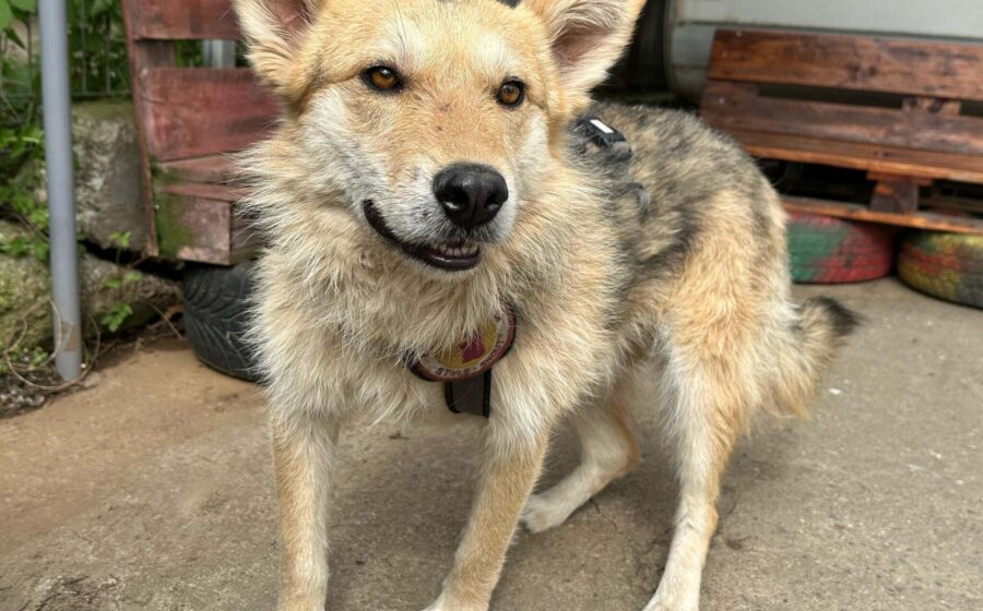 Glücklicherweise wurden unsere Helferinnen und Helfer noch rechtzeitig eingeschaltet – und so warten Calin und Heni nun bei uns im Shelter auf ein behütetes, wohlig-warmes Hundeleben. Trotz der plötzlichen und dramatischen Wendung im Leben Calins wirkt er ausgeglichen und äußerst freundlich. Er ist kein überschwänglicher, stürmender Rüde, sondern abwartend und recht zurückhaltend. Das Laufen mit Geschirr und Leine ist  noch neu für Calin, doch er bemüht sich konzentriert, Fortschritte zu erzielen.