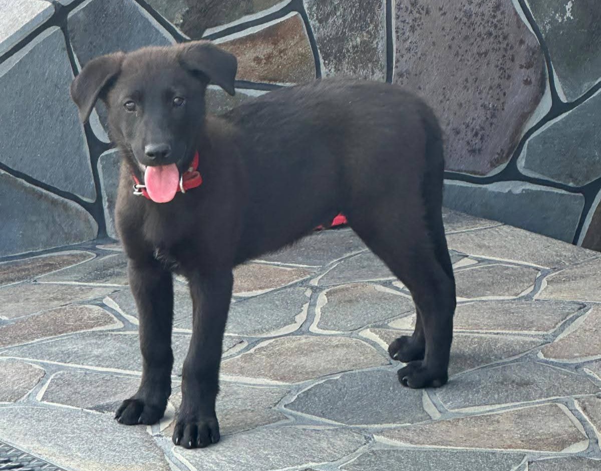 Camus ist komplett schwarz und wird vermutlich mittelgroß bis groß werden. Wer ihm einen Platz schenkt, bekommt einen neugierigen und aufgeschlossenen Junghund, der bereit ist, die Welt zu entdecken, und sich über liebevolle, aktive Menschen freut, die ihm Schritt für Schritt das Hunde-Einmaleins beibringen.