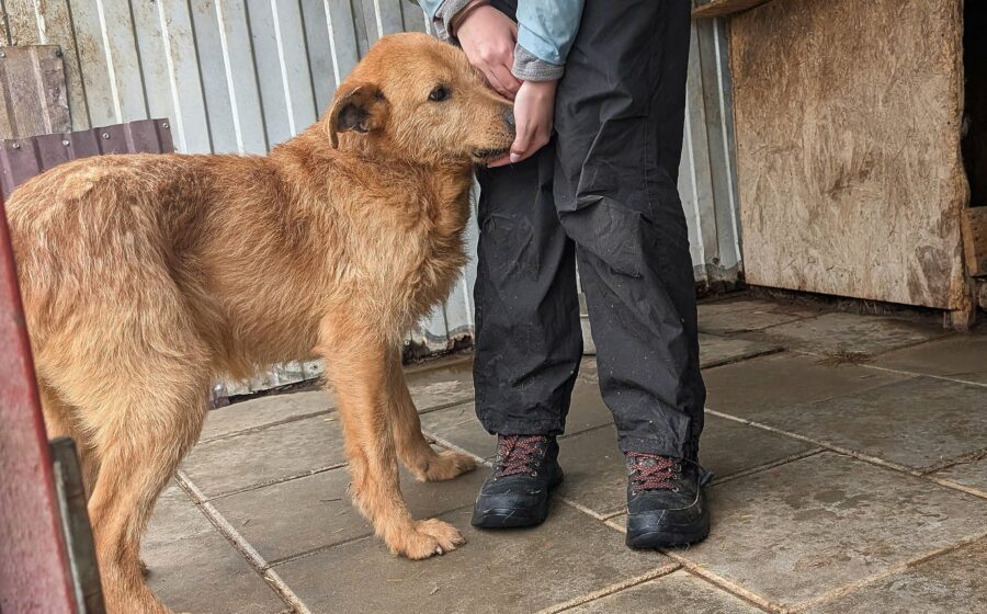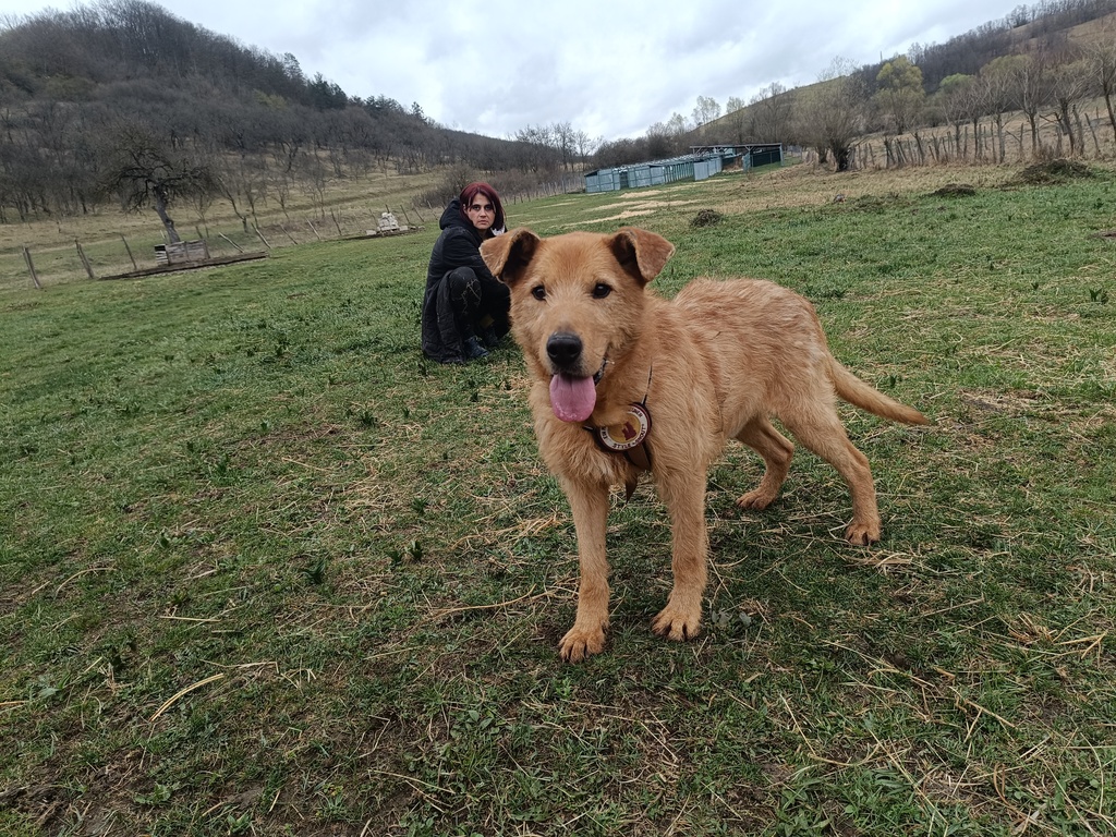 Chayton ist etwa 5 Jahre alt, ca. 57 cm groß und wiegt rund 25 kg. Mit seinem rotblonden, leicht drahtigen Fell, den lustigen Fledermausohren und seinen schwarzen, ein wenig verdutzt blickenden Augen („Was passiert hier eigentlich?“) bringt er einen ganz besonderen Charme mit. Ein bisschen erinnert er optisch an einen Terrier-Mix – auf jeden Fall ist er ein echter Hingucker.