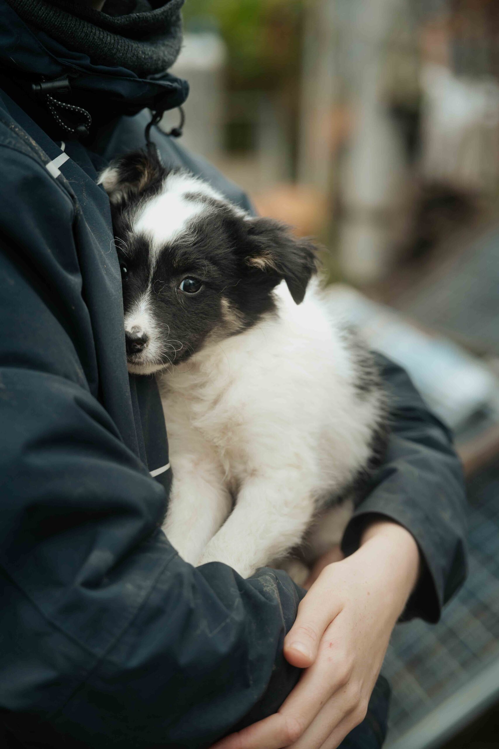 Cher ist wie eine kleine Wolke in weiß-schwarz. Ihr flauschiges weißes Fell mit schwarzen Flecken hier und dort lädt zum Kuscheln ein. Wenn sie einen dann mit ihren entzückenden Knopfaugen ansieht, ist man verliebt. Auch ihre Schlappohren und Gesicht konnten sich nicht auf eine Farbe einigen und bezaubern im schwarz-weißen Farbenspiel. Die kleine, ca. 3 Monate alte Maus wiegt derzeit um die 3-4 kg und wird vermutlich zu einer mittelgroßen Hündin aufwachsen. Ihre Mama Cassiopeia hat eine Schulterhöhe von ca. 45 cm und wir erwarten, dass auch Cher diese Größe erreichen wird.
