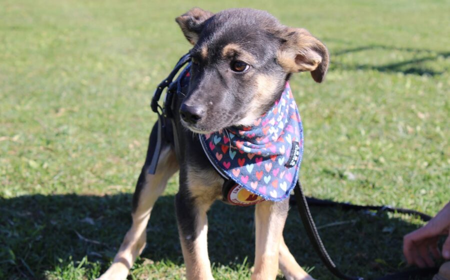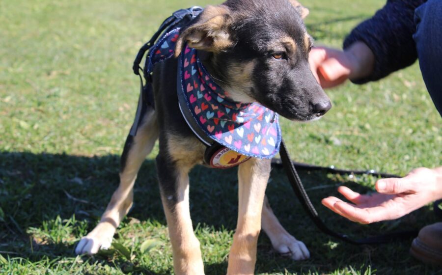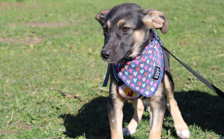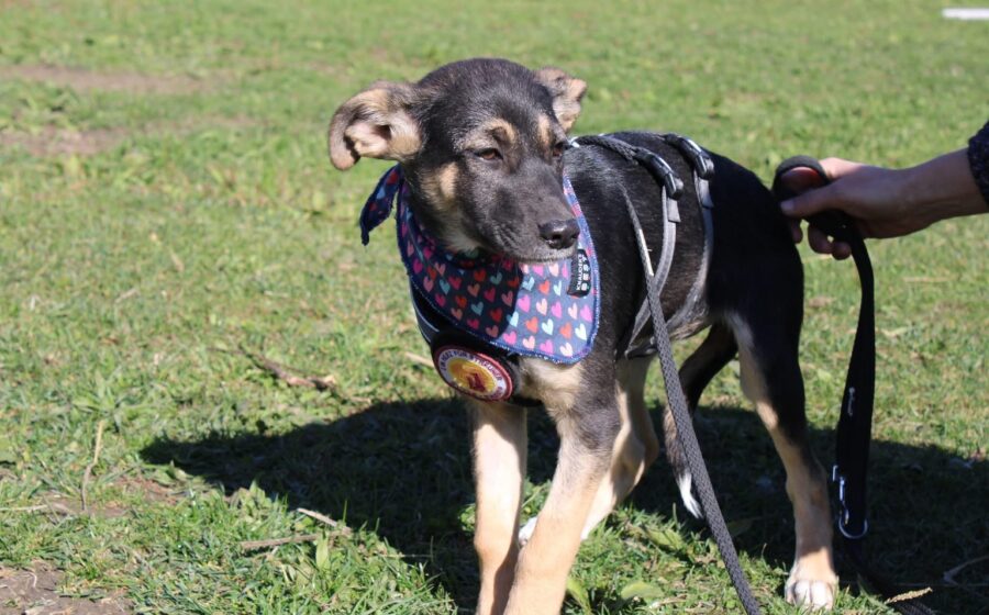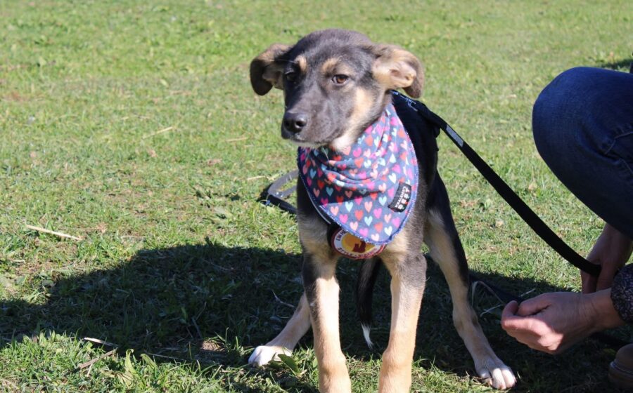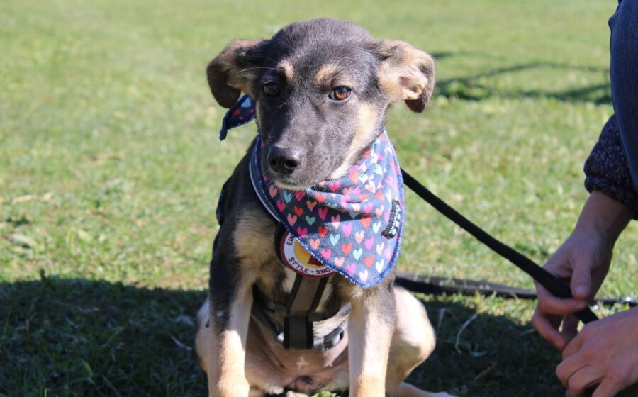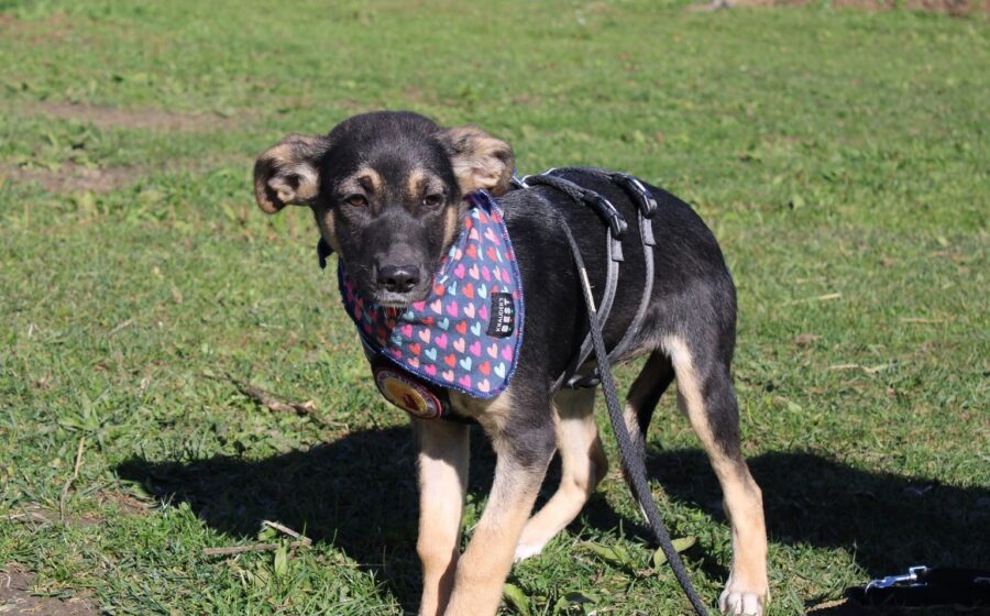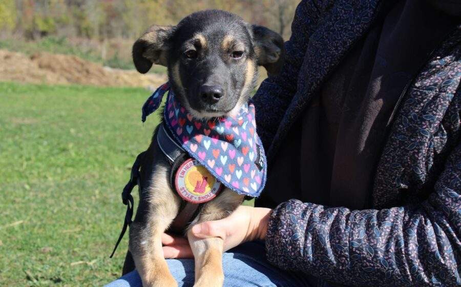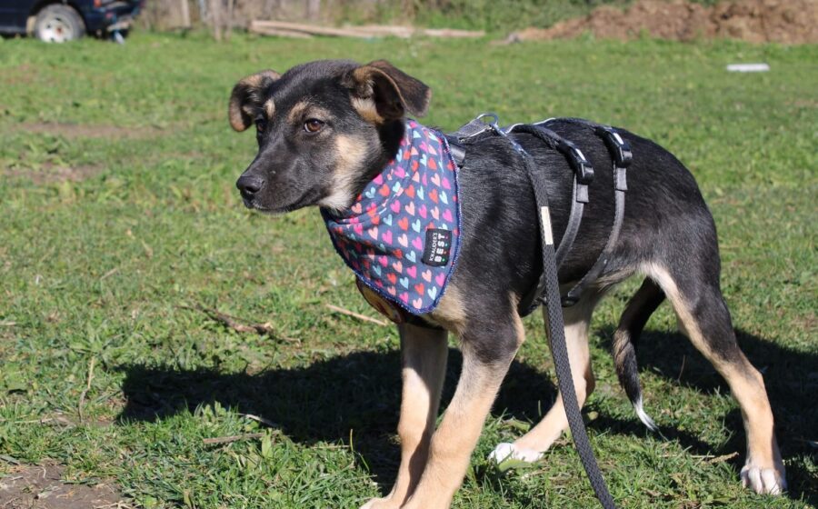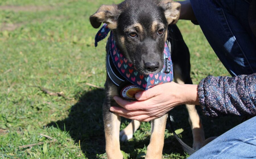 Heute lebt sie im Shelter in Fantanele. Sie wiegt aktuell rund 7 Kilo, ist etwa 40 cm groß und wird wahrscheinlich einmal eine mittlere Endgröße erreichen. Aber viel wichtiger ist: Chipsy hat einen ganz feinen Charakter. Sie ist ruhig, vorsichtig und sensibel – keine wilde Hummel. Sie schaut sich erst alles genau an, bevor sie sich traut, ein paar Schritte darauf zuzugehen.