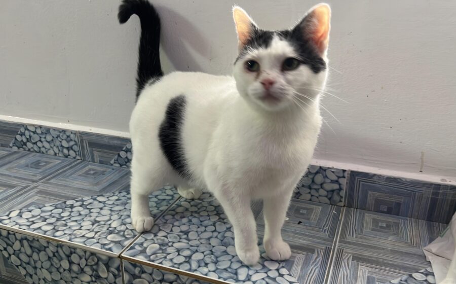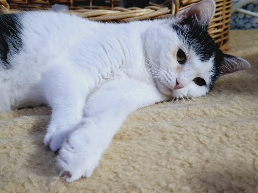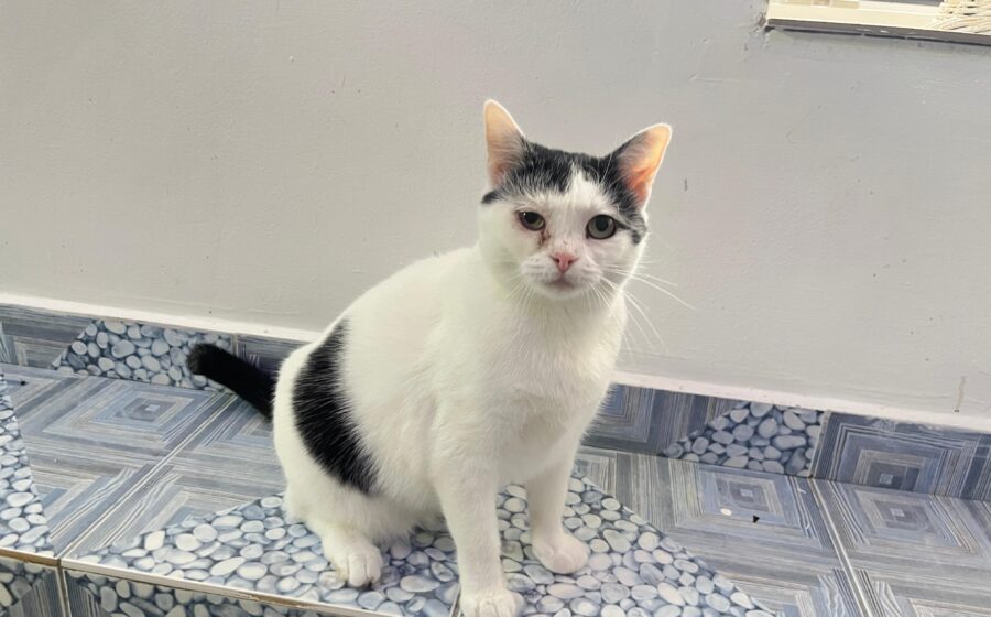 Chuya wurde zusammen mit anderen in der Innenstadt gefunden. Sie müssen davor ein Zuhause gehabt haben und wurden wohl einfach vor die Tür gesetzt. Das hat Spuren hinterlassen und Chuya litt unter dem Calicivirus. Sie wurde behandelt und hat sich erholt. Aber ein Auge ist nicht vollständig abgeheilt. Es beeinträchtigt ihre Lebensqualität nicht und würde wahrscheinlich sich verbessern, wenn es im neuen Zuhause öfter gereinigt wird. Das harte Leben auf der Straße merkt man aber Chuya aber heute nicht mehr an. Sie ist lebensfroh, verspielt und klettert gerne. Sie ist sehr menschenbezogen und lässt sich gerne streicheln.