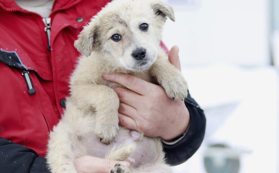 Clio heißt dieses wunderschöne Hundekind, das gemeinsam mit seinen vier Geschwistern verlassen und orientierungslos in eisiger Kälte und Schnee gefunden wurde. Und das war ihr Glück – lang hätten die kleinen Welpen hier nicht überlebt.