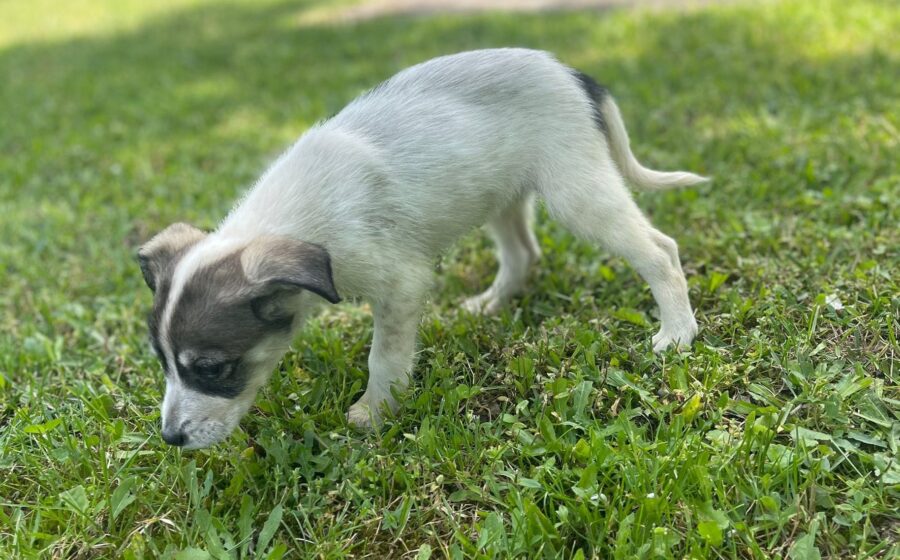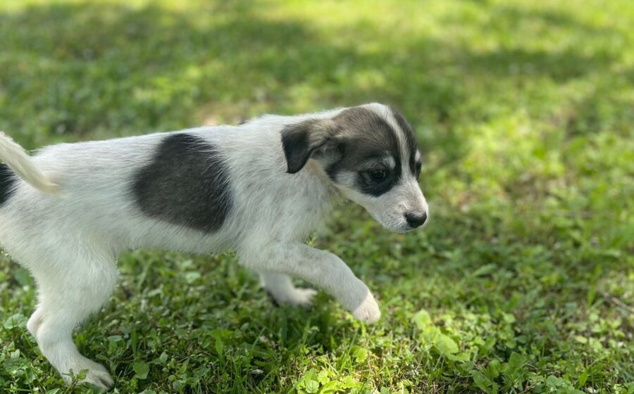 Zaubermaus Cody ist ein besonders süßes, zartes Welpen-Mädchen. Sie verzaubert mit ihrem lieben Blick, ihrem kurzen, weißen Fell mit schwarz-braunen Flecken und einem ausdrucksstarken, schmalen Gesichtchen. Ihre lustigen, kleinen Schlappöhrchen und ihr bescheidenes Auftreten verleihen ihr einen ganz besonderen Charme. Optisch erinnert sie an einen Jack Russel Terrier-Mix.