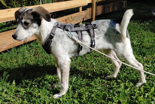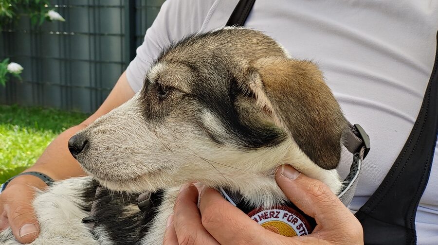 Cody zeigt sich vorsichtig und noch teilweise unsicher, aber ihre Neugier gleicht vieles aus. Sie erkundet neue Situationen und Dinge, auch wenn sie ihr zunächst unheimlich erschienen. Sie bellt, wenn sie unsicher ist und beäugt fremde Menschen noch skeptisch, Kinder sind ihr noch gar nicht geheuer. Bei alldem ist ihr Schwanz der beste Indikator für die Gemütslage: gekringelt nach oben auf dem Rücken getragen, wenn sie entspannt ist und schlaff, wenn sie unsicher ist. Aber das ist ganz normal für ein kleines Mädchen, das gerade erst angekommen ist, alles weitere werden die nächsten Wochen der Eingewöhnung zeigen.