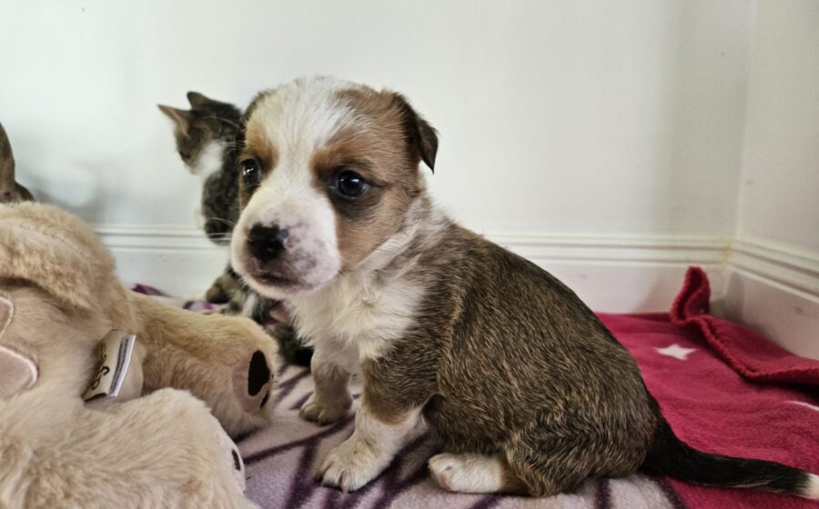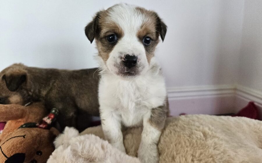 Aktuelle Bilder und Videos zeigen, wie gut sich Colbin entwickelt. Er geht sehr gerne auf Entdeckungstouren und spielt mit allem, was sich seinen niedlichen Äuglein bietet. Im Augenblick ist mancher Teddy größer als Colbin, der momentan 1,5 kg wiegt, was für unseren Wirbelwind natürlich überhaupt keine Rolle spielt. Sein Lebensmensch bzw. seine Familie sollte(n) gleich von Beginn an konsequent mit Colbin das Welpen-ABC einüben bzw. festigen. Kleine Missgeschicke werden dazugehören und sollten gelassen und mit einem Lächeln beantwortet werden. Die Pubertät wird unseren weiß-braunen Herzensdieb zudem in einigen Monaten kräftig durchwirbeln – das bis dahin Erlernte könnte während dieser Phase teilweise in Vergessenheit geraten. Ist die Etappe der hormonellen Veränderung durchlebt, heißt es durchatmen und staunen über einen sicherlich souveränen und bezaubernden Begleiter, der dich in guten und in schlechten Zeiten niemals im Stich lassen wird. Katzen und Hunde können sehr gerne gemeinsam mit Colbin durch den Alltag tapsen – hier sollte man, vor allem während der ersten Wochen, darauf achten, dass Colbin beim Spielen nicht zu ungestüm auftritt.