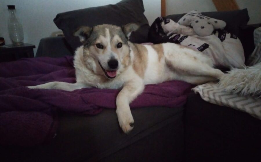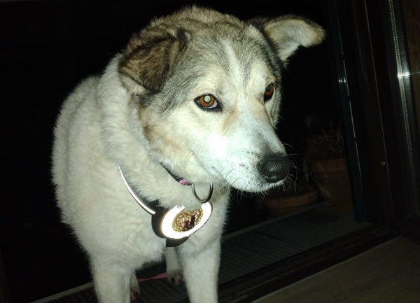 Die hübsche Hündin ist etwa 45 cm groß und besticht durch ihr weiß-beige-graues Fell und ihre warmen, bernsteinfarbenen Augen. Ihr bisheriges Leben war nicht leicht: Sie verbrachte lange Zeit an der Kette und verlor nach dem Tod ihres Besitzers alles, was sie kannte. Umso bemerkenswerter ist es, wie offen und liebevoll sie sich heute zeigt.